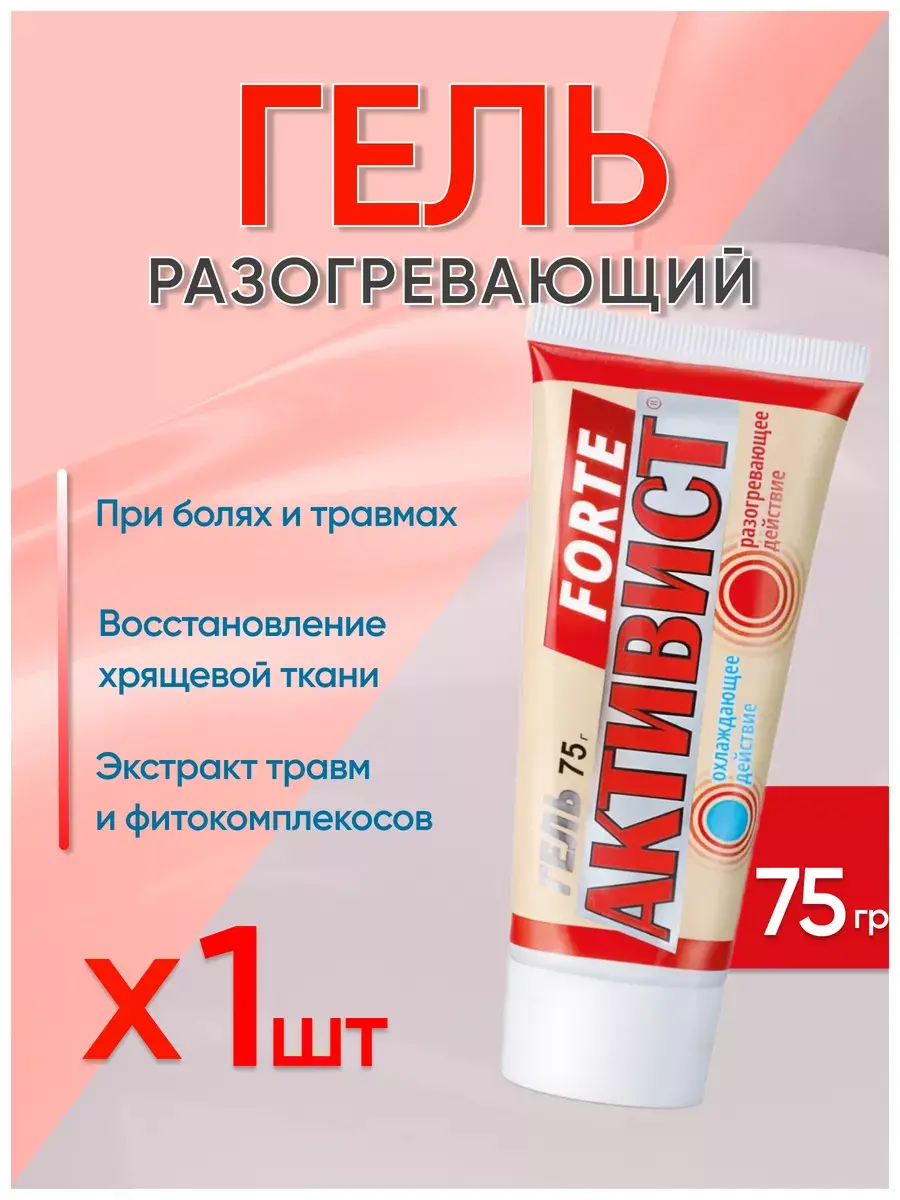 Гель мазь крем Активист, для ухода за кожей в области суставов. Обладает охлаждающей разогревающим эффектом. Снимает напряжение и усталость мышц. Улучшает микроциркуляцию крови. Оказывает противовоспалительное действие. Ускоряет рассасывание гематом и отёков. Улучшает эластичность стенок сосудов. Сразу после нанесения начинается охлаждающее действие благодаря эфирному маслу эвкалипта и ментолу. Компоненты глубоко проникают в ткани, активизируют защитные силы организма, обладают болеутоляющим, противовоспалительным действием. Затем начинается согревающее и расслабляющее действие благодаря уникальному фитокомплексу. **Состав:** фитокомплекс, содержащий экстракты конского каштана, полыни, пихты, перца красного; эфирное масло эвкалипта; эфирное масло мяты; камфора; ментол; глицерин; скипидар; карбопол; триэтаноламин; роконсал; вода очищенная. Гель наносят на чистую, сухую кожу и втирают легкими массажными движениями. Гель можно не смывать.
