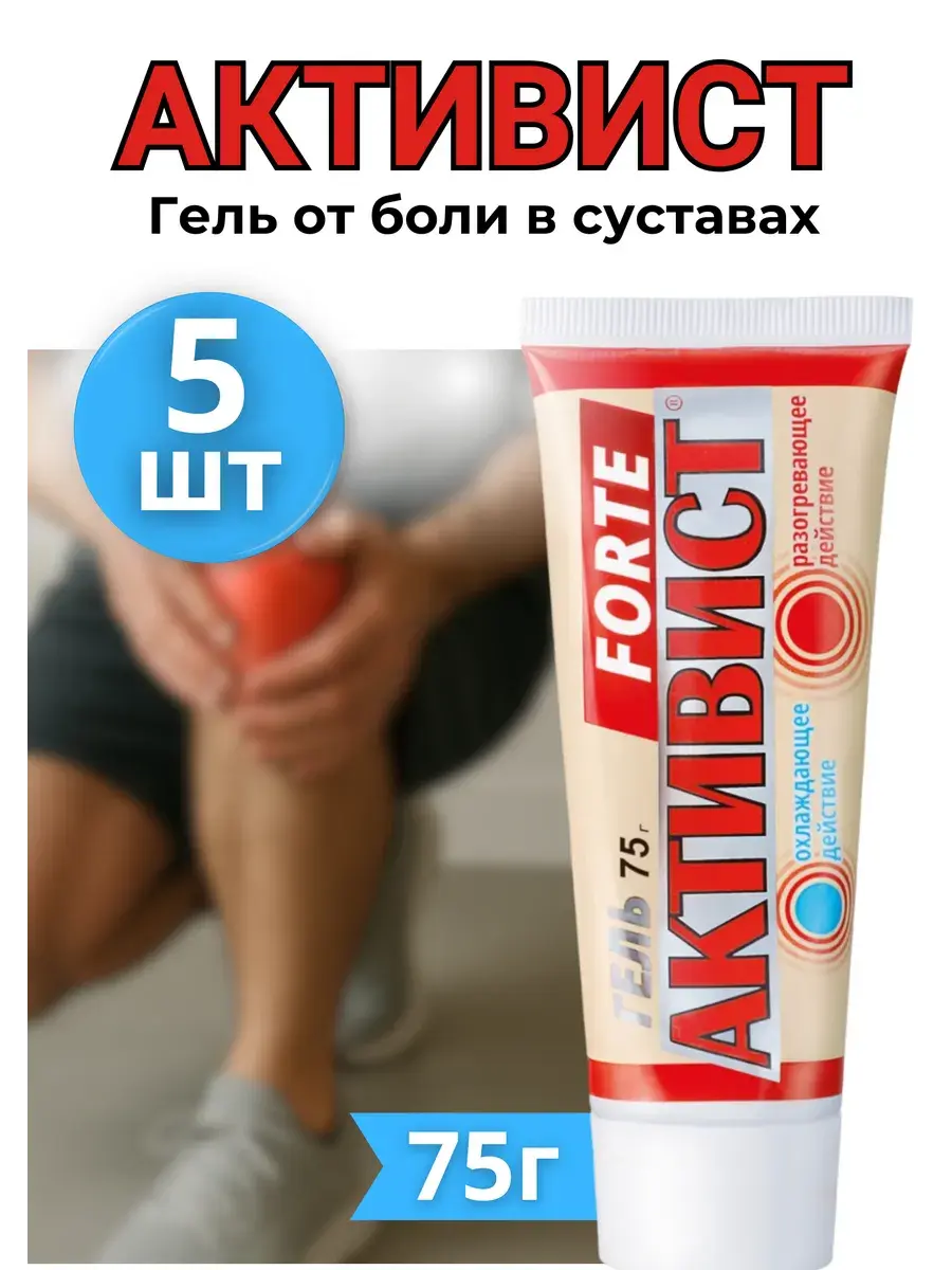 Гель мазь крем Активист, для ухода за кожей в области суставов. Обладает охлаждающей разогревающим эффектом. Снимает напряжение и усталость мышц. Улучшает микроциркуляцию крови. Оказывает противовоспалительное действие. Ускоряет рассасывание гематом и отёков. Улучшает эластичность стенок сосудов. Сразу после нанесения начинается охлаждающее действие благодаря эфирному маслу эвкалипта и ментолу. Компоненты глубоко проникают в ткани, активизируют защитные силы организма, обладают болеутоляющим, противовоспалительным действием. Затем начинается согревающее и расслабляющее действие благодаря уникальному фитокомплексу. **Состав:** фитокомплекс, содержащий экстракты конского каштана, полыни, пихты, перца красного; эфирное масло эвкалипта; эфирное масло мяты; камфора; ментол; глицерин; скипидар; карбопол; триэтаноламин; роконсал; вода очищенная. Гель наносят на чистую, сухую кожу и втирают легкими массажными движениями. Гель можно не смывать.