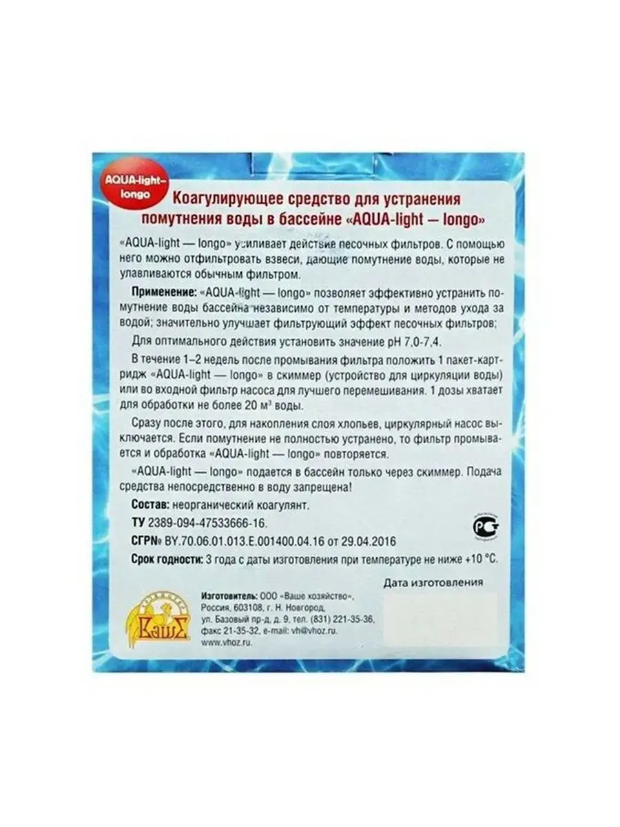 - 2-х компонентный препарат для комплексной дезинфекции воды в бассейнах, сочетает в себе твердый порошок-источник активного кислорода и жидкий компонент-флокулянт. Система освежает и смягчает воду, способствует комфортному купанию, не раздражает глаза и слизистые; задерживает рост и размножение одноклеточных водорослей.