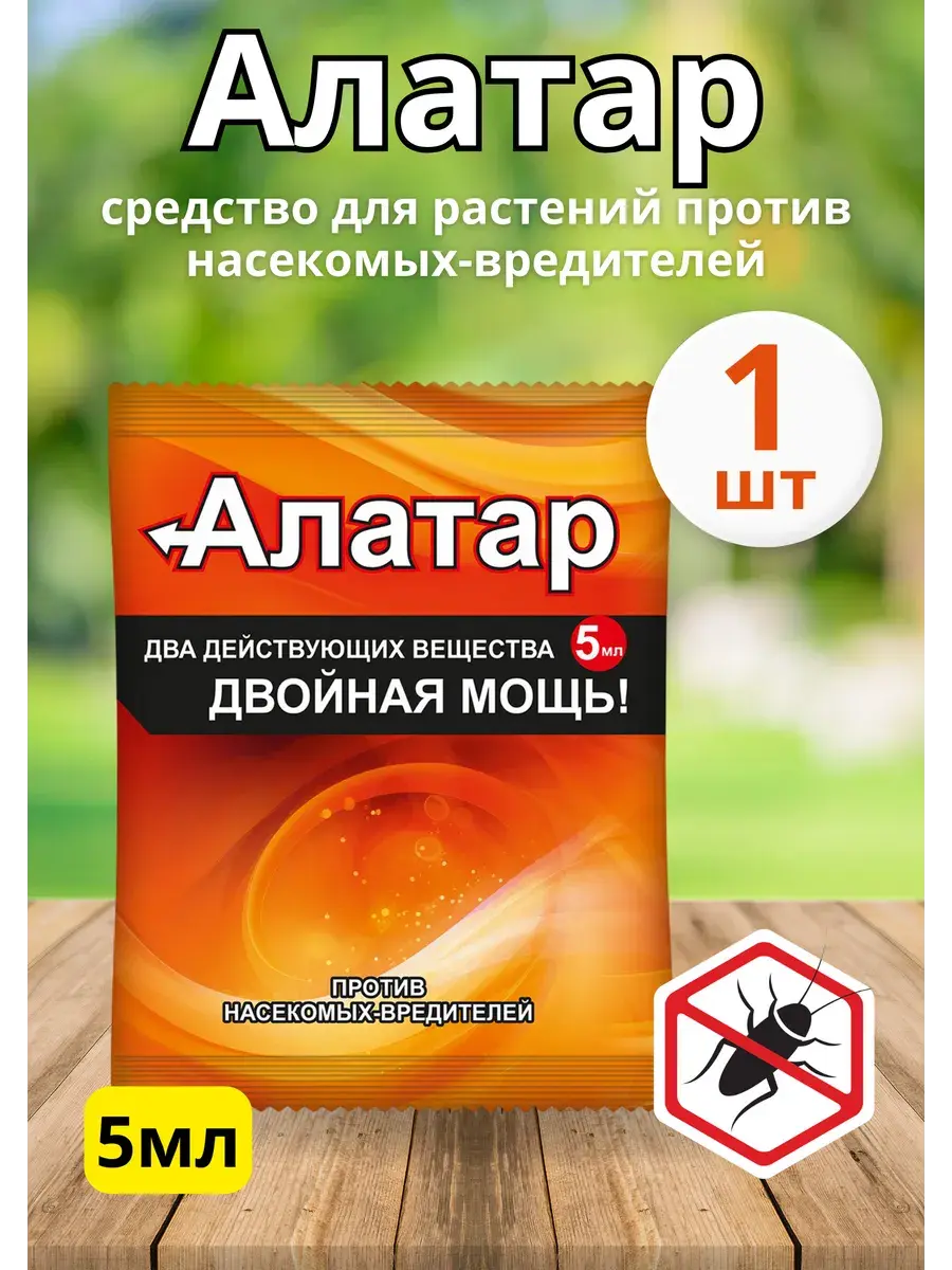 Алатар наносит по вредителям двойной удар, так как содержит сразу два действующих вещества: малатион и циперметрин. Он успешно подавляет даже устойчивые популяции вредителей и обладает синергическим эффектом. Входящий в его состав прилипатель препятствует скатыванию раствора с листьев и смыванию дождем, удлиняет период защитного действия. Препарат имеет малую норму расхода — всего 5 мл/10 л воды на 1 сотку.«Алатар». Это универсальный препарат, он эффективен против множества вредителей плодожорок белянок совок листоверток тлей колорадского жука медяницы трипсов белокрылок, долгоносиков, клещей и т.д. . «Алатар» защитит от вредителей большинство садовых и огородных культур на Вашем участке капусту огурц, томаты яблоню смородину, малину, цветы и т.д.) «Алатар» наносит по вредителям двойной удар, так как содержит сразу два действующих вещества: малатион и циперметрин. Он успешно подавляет даже устойчивые популяции вредителей и обладает синергическим эффектом. Входящий в его состав прилипатель препятствует скатыванию раствора с листьев и смыванию дождем, удлиняет период защитного действия. Препарат имеет малую норму расхода — всего 5 мл/10 л воды на 1 сотку. В вашей садовой аптечке «Алатар» должен быть обязательно как первейшее средство неотложной помощи при неожиданном нападении вредителей.Алатар для борьбы с насекомыми применяется весь сезон активного роста культур. Препарат широкого спектра действия справляется с 60 видами вредителей сада и огорода. Быстрый результат наступает благодаря действию сразу двух активных компонентов. Остаточный эффект сохраняется 20 дней. Препарат устойчив к влаге, ультрафиолетовым лучам. Уничтожает имаго, нимф и личинок разного возраста.