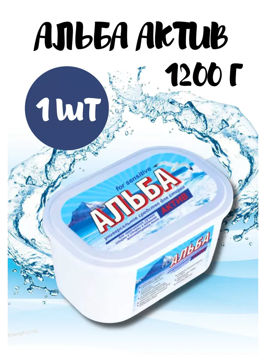 Средство для стирки Альба Актив контейнер 1200г. Средство для стирки «Альба Актив» - это инновационное средство, которое обеспечивает высокую эффективность удаления пятен, свежесть и приятный аромат вашего белья. Обладает следующими преимуществами: подходит для замачивания, ручной стирки и стирки в машинах активаторного типа. Концентрат — в два раза экономичнее стирального порошка, 1 упаковка (1200 г.) = 24 стирки = 120 кг чистого белья. Не вызывает аллергических реакций (порошок гипоаллергенный) и раздражения кожи, безопасно для окружающей среды. Оно не содержит фосфатов и других вредных химических веществ, что делает его экологически чистым и безопасным для использования. Деликатно удаляет сложные пятна (кофе; вино, грязь и жир), проникая глубоко в волокна ткани, разлагая пятна и удаляя их даже при низких температурах стирки. Полностью выполаскивается из ткани, предотвращает выцветание и потерю яркости цветов, сохраняя ваше белье свежим и новым даже после многократных стирок; безопасно для любых видов тканей, усиливает белизну.