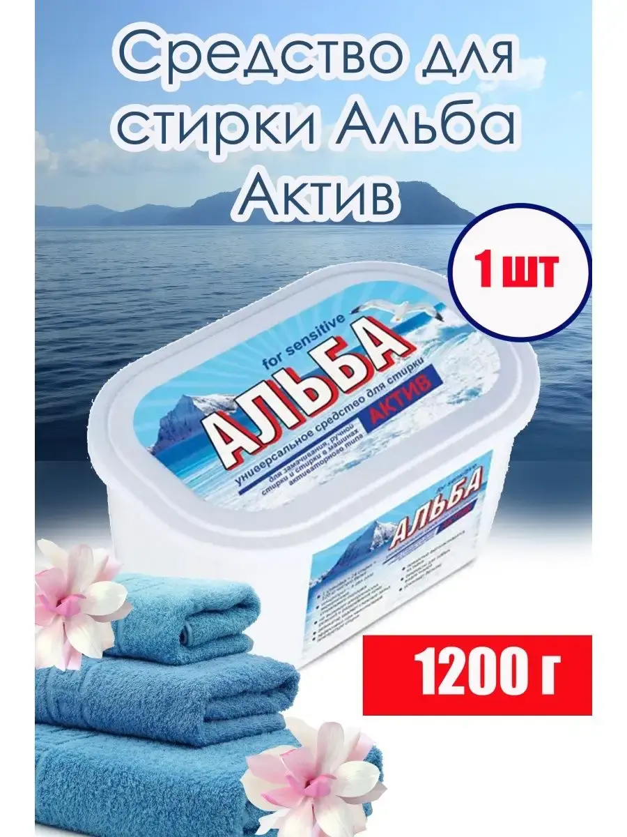Средство для стирки Альба Актив контейнер 1200г. Средство для стирки «Альба Актив» - это инновационное средство, которое обеспечивает высокую эффективность удаления пятен, свежесть и приятный аромат вашего белья. Обладает следующими преимуществами: подходит для замачивания, ручной стирки и стирки в машинах активаторного типа. Концентрат — в два раза экономичнее стирального порошка, 1 упаковка (1200 г.) = 24 стирки = 120 кг чистого белья. Не вызывает аллергических реакций (порошок гипоаллергенный) и раздражения кожи, безопасно для окружающей среды. Оно не содержит фосфатов и других вредных химических веществ, что делает его экологически чистым и безопасным для использования. Деликатно удаляет сложные пятна (кофе; вино, грязь и жир), проникая глубоко в волокна ткани, разлагая пятна и удаляя их даже при низких температурах стирки. Полностью выполаскивается из ткани, предотвращает выцветание и потерю яркости цветов, сохраняя ваше белье свежим и новым даже после многократных стирок; безопасно для любых видов тканей, усиливает белизну.