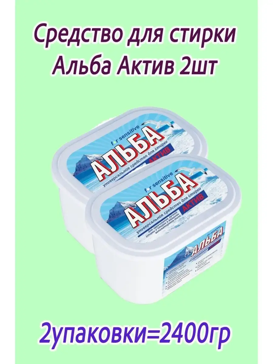 Средство для стирки Альба Актив контейнер 1200г. Средство для стирки «Альба Актив» - это инновационное средство, которое обеспечивает высокую эффективность удаления пятен, свежесть и приятный аромат вашего белья. Обладает следующими преимуществами: подходит для замачивания, ручной стирки и стирки в машинах активаторного типа. Концентрат — в два раза экономичнее стирального порошка, 1 упаковка (1200 г.) = 24 стирки = 120 кг чистого белья. Не вызывает аллергических реакций (порошок гипоаллергенный) и раздражения кожи, безопасно для окружающей среды. Оно не содержит фосфатов и других вредных химических веществ, что делает его экологически чистым и безопасным для использования. Деликатно удаляет сложные пятна (кофе; вино, грязь и жир), проникая глубоко в волокна ткани, разлагая пятна и удаляя их даже при низких температурах стирки. Полностью выполаскивается из ткани, предотвращает выцветание и потерю яркости цветов, сохраняя ваше белье свежим и новым даже после многократных стирок; безопасно для любых видов тканей, усиливает белизну.