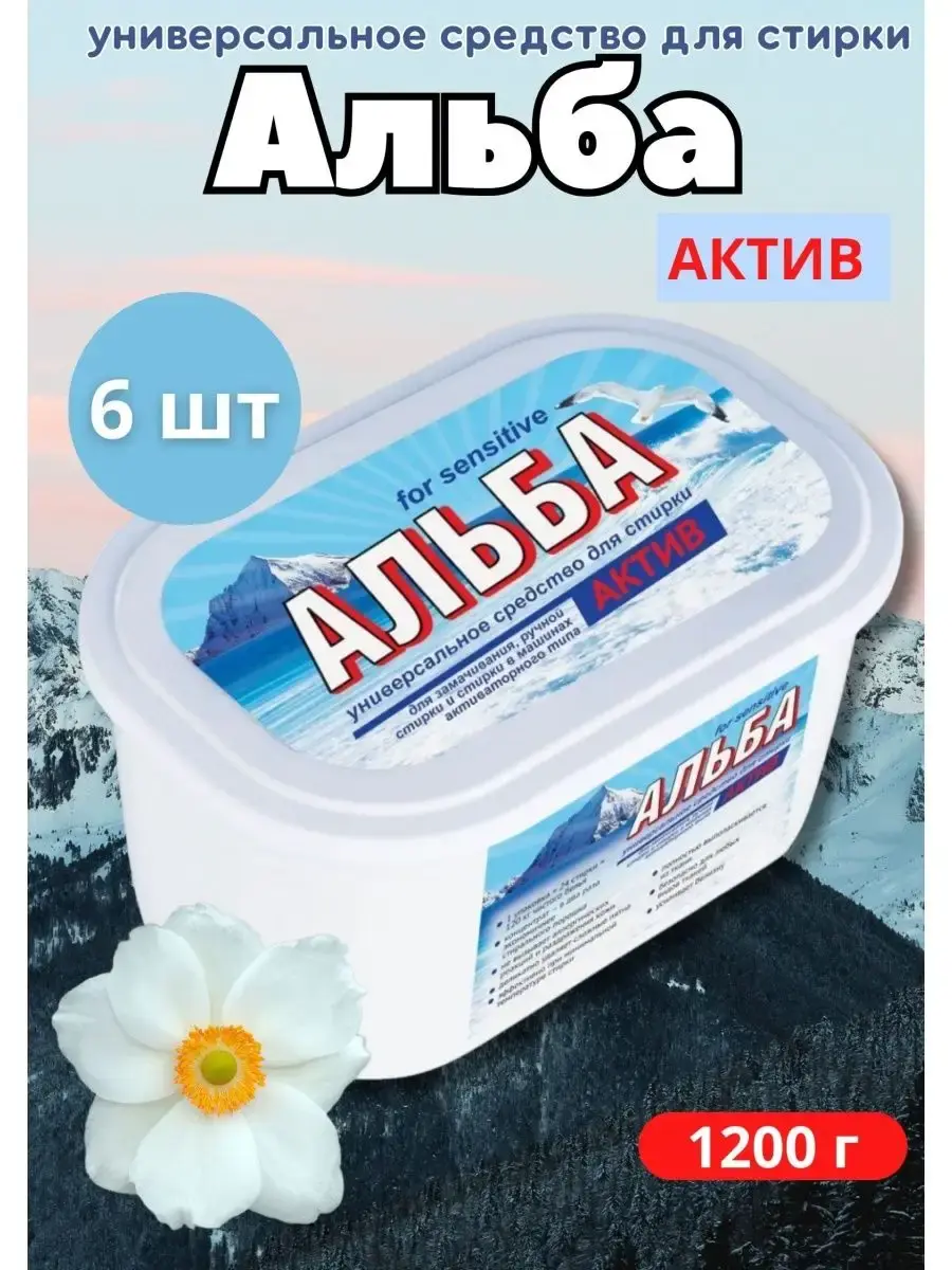 Средство для стирки Альба актив контейнер 1200г. Средство для стирки «Альба Актив» - это инновационное средство, которое обеспечивает высокую эффективность удаления пятен, свежесть и приятный аромат вашего белья. Обладает следующими преимуществами: подходит для замачивания, ручной стирки и стирки в машинах активаторного типа. Концентрат — в два раза экономичнее стирального порошка, 1 упаковка (1200 г.) = 24 стирки = 120 кг чистого белья. Не вызывает аллергических реакций (порошок гипоаллергенный) и раздражения кожи, безопасно для окружающей среды. Оно не содержит фосфатов и других вредных химических веществ, что делает его экологически чистым и безопасным для использования. Деликатно удаляет сложные пятна (кофе; вино, грязь и жир), проникая глубоко в волокна ткани, разлагая пятна и удаляя их даже при низких температурах стирки. Полностью выполаскивается из ткани, предотвращает выцветание и потерю яркости цветов, сохраняя ваше белье свежим и новым даже после многократных стирок; безопасно для любых видов тканей, усиливает белизну.