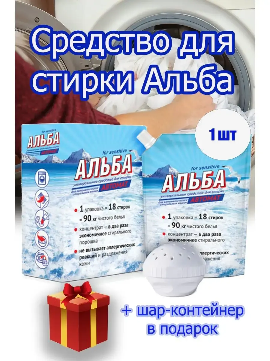 Альба Автомат for sensitive гель - Средство для стирки Альба автомат 900г. для автоматических стиральных машин. Концентрат — в два раза экономичнее стирального порошка. Гель для стирки Альба автомат не вызывает аллергических реакций и раздражения кожи. Деликатно удаляет сложные пятна. Эффективно при минимальной температуре стирки. Альба для стирки автомат полностью выполаскивается из ткани. Концентрированный стиральный порошок безопасен для любых видов тканей. Усиливает белизну. Рекомендации при использовании: изделия из хлопчатобумажных и льняных тканей рекомендуется предварительно замачивать. Цветное белье замачивать и стирать отдельно. Для сильно загрязненного белья расход средства увеличить. Следовать рекомендациям на ярлыках изделий. Применение и дозировка: для стирки использовать шар-контейнер., который приобретается отдельно. Открутить верхнюю часть шара от нижней. Через носик пакета извлечь пасту в количестве 50 мл, наполнить ею нижнюю часть контейнера. Для удобства использования на внутренней поверхности шара— линия, соответствующие 50 мл средства. Закрутить верхнюю крышку контейнера и поместить его вместе с бельём в барабан стиральной машины. Замачивание белья: 25г (1 столовую ложку) на 4-5 литров теплой воды (35-45С). Время замачивания 2-3 часа. Ручная стирка: 25 г (1 столовую ложку) пасты растворить в 4-5 литрах теплой воды 35-45С. Машинная стирка: 50 грамм (2 столовые ложки) пасты на 4-5 кг белья заложить шар в барабан с бельем. При крайне сильном загрязнении нанести пасту на места загрязнения.Концентрированный порошок стиральный автомат для стирки предназначен для цветного белья и белого белья. Стиральный порошок автомат применим для одежды, постельного белья, хлопка и полотенец. Не вызывает аллергических реакций, может использоваться как порошок детский гипоаллергенный.