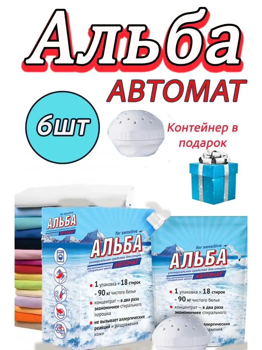 Альба Автомат for sensitive гель - Средство для стирки Альба автомат 900г. для автоматических стиральных машин. Средство для стирки Альба автомат — это паста, специально разработанная для автоматических стиральных машин. Она предназначена для качественной стирки белья, включая как цветное, так и белое. Концентрированная формула позволяет эффективно удалять загрязнения, сохраняя яркость и мягкость тканей. Средство легко выполаскивается, не оставляя следов, и безопасно для кожи. Альба автомат подходит для всех типов тканей, включая хлопок и лен, делая стирку простой и комфортной для каждого дома. Гель деликатно удаляет даже самые сложные пятна, сохраняя при этом текстуру и яркость тканей. Он безопасен для кожи и не вызывает аллергических реакций, что позволяет использовать его для стирки детской одежды. Для сильно загрязненного белья стоит увеличить дозировку средства, что обеспечит глубокую очистку. Гель подходит для всех видов тканей, включая хлопок и лен, что делает его незаменимым помощником в уходе за одеждой и домашним текстилем.Цветное белье замачивать и стирать отдельно. Для сильно загрязненного белья расход средства увеличить. Следовать рекомендациям на ярлыках изделий. Применение и дозировка: для стирки использовать шар-контейнер., который приобретается отдельно. Открутить верхнюю часть шара от нижней. Через носик пакета извлечь пасту в количестве 50 мл, наполнить ею нижнюю часть контейнера. Для удобства использования на внутренней поверхности шара— линия, соответствующие 50 мл средства. Закрутить верхнюю крышку контейнера и поместить его вместе с бельём в барабан стиральной машины. Замачивание белья: 25г (1 столовую ложку) на 4-5 литров теплой воды (35-45С). Время замачивания 2-3 часа. Ручная стирка: 25г (1 столовую ложку) пасты растворить в 4-5 литрах теплой воды 35-45С. Машинная стирка: 50г (2 столовые ложки) пасты на 4-5 кг белья заложить шар в барабан с бельем. При крайне сильном загрязнении нанести пасту на места загрязнения.