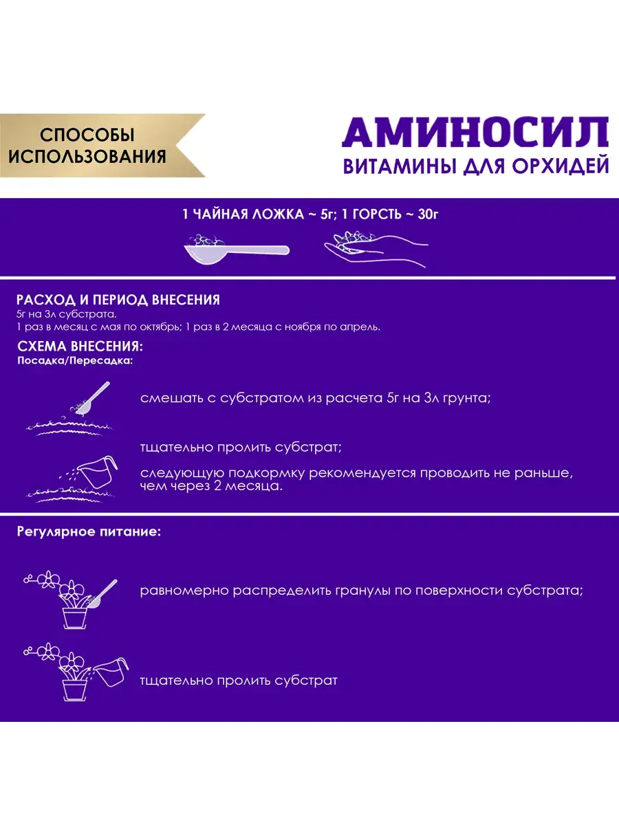 Аминосил удобрение для орхидей 50гр гранулы - это специализированное удобрение, разработанное для обеспечения полноценного питания всех видов орхидей. Гранулы содержат необходимые макро- и микроэлементы, способствующие здоровому росту, укреплению корней и интенсивному цветению. Подходит для использования как в домашних условиях, так и в оранжереях.