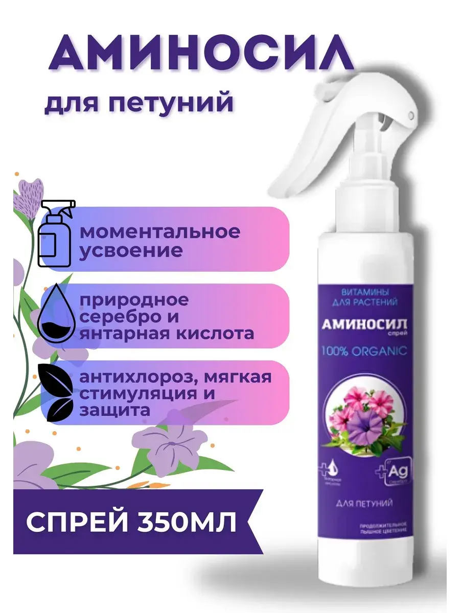 Специальный спрей для ухода за петуньями. Стимулирует рост, укрепляет растения и защищает от вредителей. Экологически чистый состав, удобный распылитель для легкого использования.