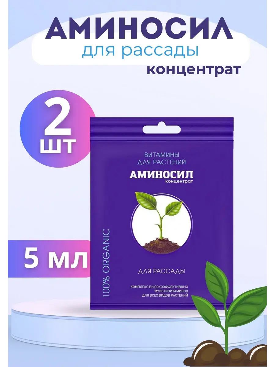 АМИНОСИЛ - уникальный комплекс витаминов и аминокислот для растений всех видов, разработанный специально для декоративных и плодовых культур. В состав удобрения для рассады входят макро и микроэлементы, а также более 40 важнейших аминокислот, в специальной хелатной, легко усваиваемой форме. Подкормка для рассады идеальна для роста и питания. Обеспечивает обильный рост зелёной массы. ПРИМЕНЕНИЕ: 5 мл витаминного концентрата Аминосил разбавить в 1 л воды до образования однородного раствора. Замачивать семена – 6 часов, луковицы и клубни – 2,5 часа, черенки выдерживать вертикально в течение 12 часов. Высадка рассады: 20 мл на 1 л воды. Поливать почву и растение раствором ближе к корневой системе из расчета 1л на 1 м кв или опрыскивать до полного смачивания листьев (допускается снижение концентрации до 10 мл на 1 л воды). На этапе рассады препарат поменяется 1 раз в месяц. После высадки рассады рекомендуется опрыскивать растения до начала плодоношения 1 раз в две недели и одну корневую подкормку в конце сезона для ускорения созревания плодов. Для пасленовых допускается обработка в течение всей жизни растения. Витаминный комплекс можно применять в любых баковых смесях, он усилит действие дополнительно вносимых удобрений и поддержит растения в случае обработки от вредителей или болезней.