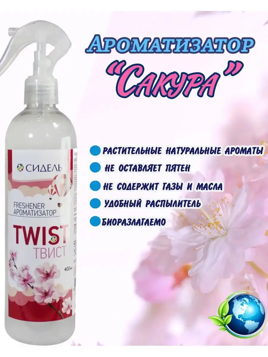 Парфюмерная композиция "Твист" - это тонкий свежий аромат цветов сакуры, наполнит Ваше помещение теплом и свежестью и позволит насладиться жизнью. Уникальное ароматизирующее средство эффективно устраняет неприятные запахи и наполняет воздух легкой свежестью. Ароматизирующие средства наполняют вашу жизнь яркими запахами и впечатлениями, позволяя Вам дышать полной грудью и наслаждаться рассветом, любовью, улыбками, мечтами. Инновационный формат ароматизаторов "Сидель" без использования жидкого газа позволяет пользоваться им даже в детских комнатах, а благодаря отсутствию в составе маслянистых веществ ароматизаторы безопасны для обивки из кожи и ткани, мебели и других поверхностей. Преимущества: растительные натуральные ароматы не оставляет пятен не содержит растворенные газы и масла удобная упаковка и эффективный распылитель биоразлагаемо.