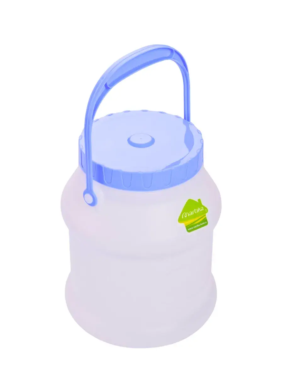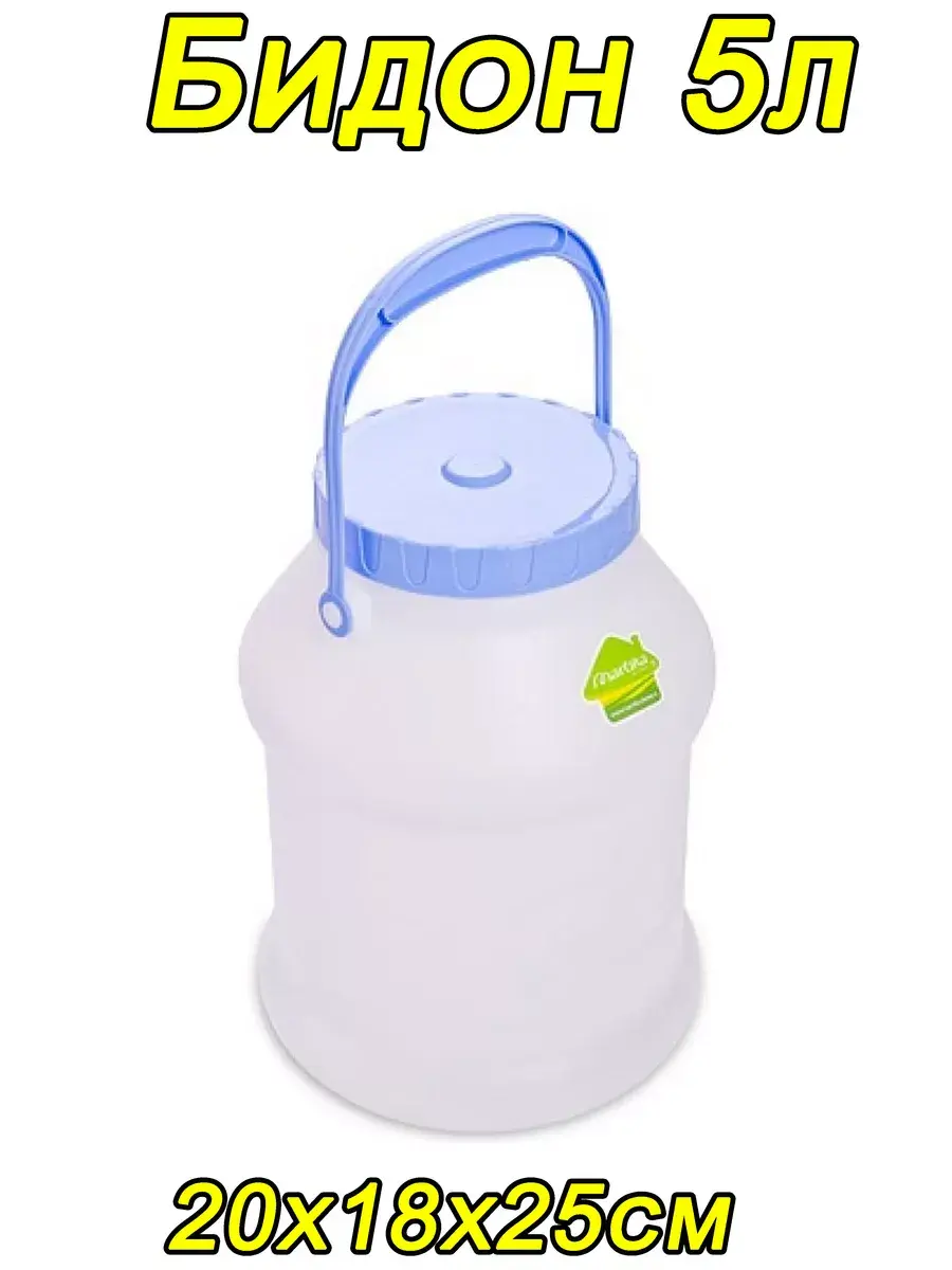 Бидон пластиковый 5 л ПРОСПЕРО для хранения жидкостей меда сыпучих продуктов сбора ягод и для других бытовых целей. Пригодится в доме и на даче. Бидон имеет винтовую крышку, которая достаточно плотно прилегает к корпусу, но не гарантирует полную герметичность. Для удобства переноски имеется удобная встроенная ручка.