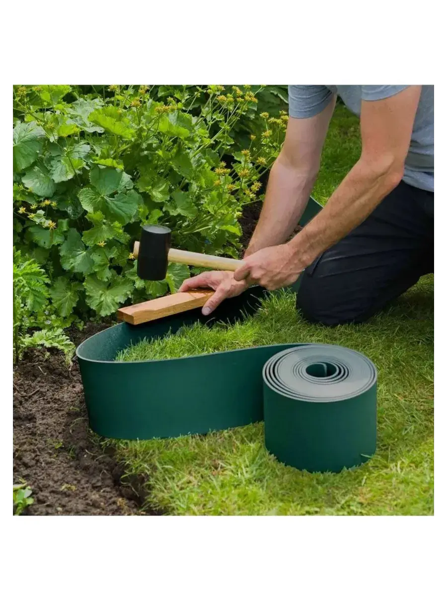 Бордюрная лента садовая высота - 15 см, длина в рулоне -10 м зеленая.