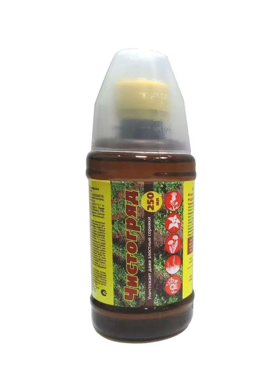Гербицид общеистребляющего действия. Уничтожает даже злостные сорняки:-осот,пырей,свинорой,вьюнок,одуванчик,крапиву. Применяется на участках под посев овощных и цветочных культур,газонов,картофеля,и по участкам,не предназначенным под посадку (межи и тп) Применение: отмеренное в соот-и с таблицей кол-во препарата вылить в пластиковую или эмалированную емкости с небольшим количеством воды(1л) и тщательно перемешать.Затем рабочий раствор довести до требуемого объема соглсно таблице.Кратность обработок-1. Дождь,прошедший ранее чем через 12 часов снижает эффективность действия препарата. Скорость воздействия :5-20 дней после обработки. Сроки выхода для проведения ручных работ :3 дня. Период защитного действия -от 2 недель до 1 месяца.Совместим с большей частью престицидов,кроме сильнощелочных препоратов.Не вызывает резистентности. Норма применения препарата : -50мл\3л воды----однолетние и многолетние злаковые и двудольные сорняки. - 75мл\3л воды---однолетние и многолетние злаковые и двудольные сорняки,в том числе злостные.