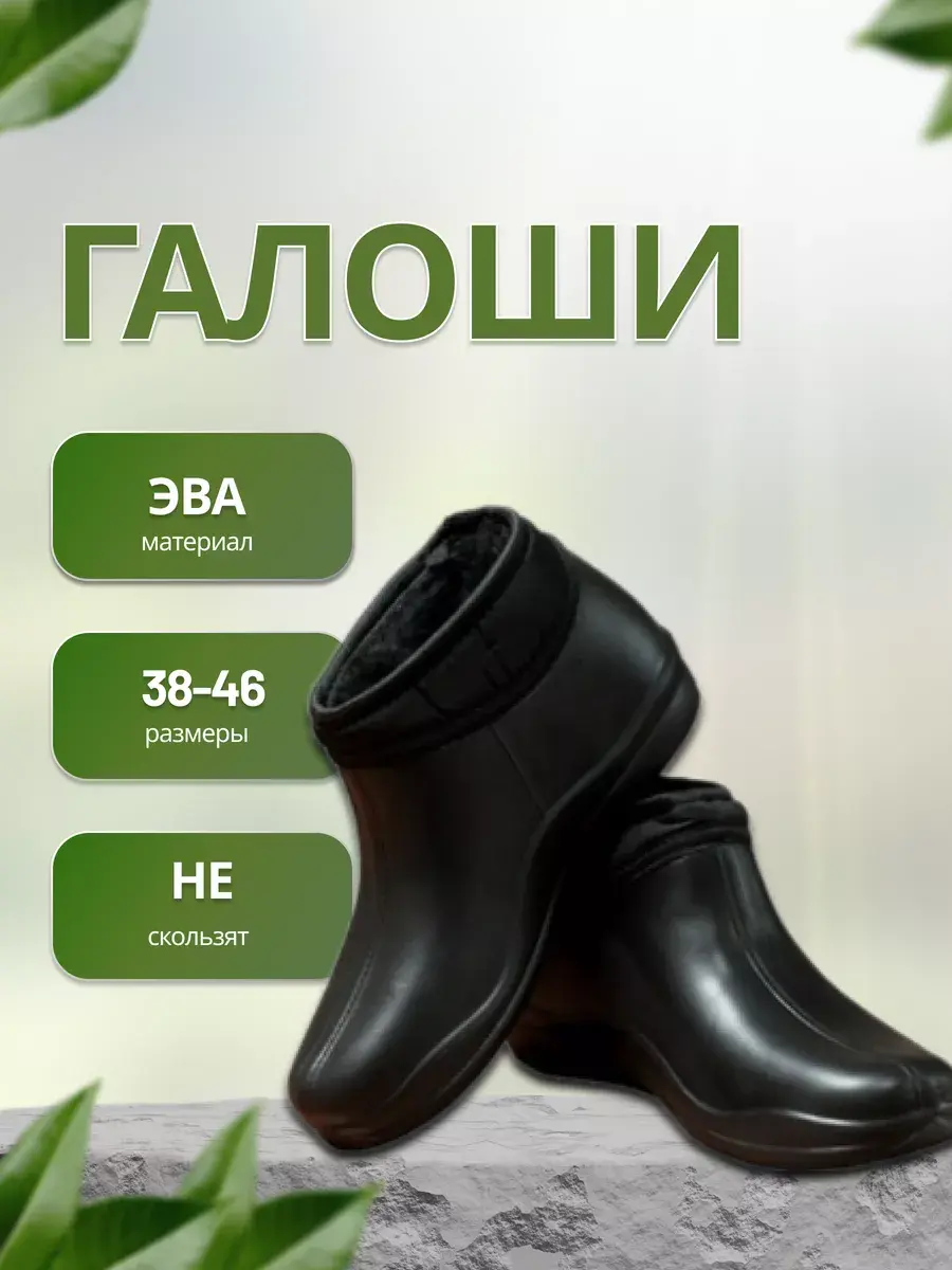 Галоши универсальные утепленные из ЭВА отличный выбор обуви для дачи и огорода в холодное время года. Хорошая практичная демисезонная обувь до -5градусов. Теплые галоши, которые можно носить как зимой, так и на сезон весна-осень. Калоши можно использовать и как спецобувь. Короткие галоши с утеплителем отлично подойдут для сада, огорода, рыбалки, похода и охоты. Модель выполнена под классические ботинки, отлично подойдут в подарок, для похода в магазин. Практичные осенне-зимние ботинки для дачи не боятся дождя и слякоти. Галоши очень легкие, утеплены искусственным мехом, который не даст вам замерзнуть. Легко одеваются и снимаются. Обувь непромокаемая. Подойдут в подарок. Галоши выполнены из полимера ЭВА методом бесшовного монолитного литья.
