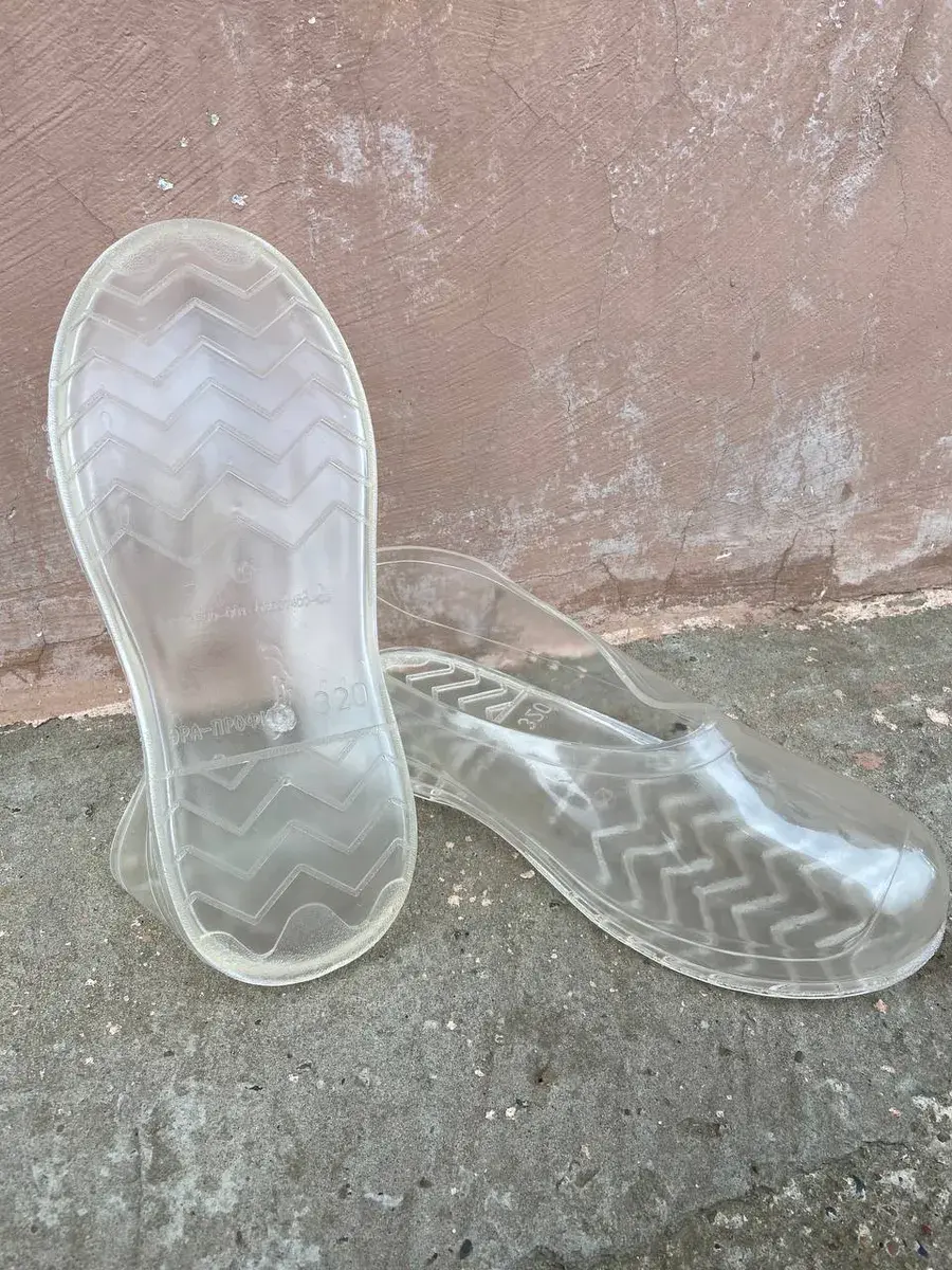 Галоши надеваются поверх валенок и защищают их от промокания и загрязнений. Галоши на валенки изготавливаются из ПВХ по технологии однокомпонентного литья методом горячего формования. Используется качественное сырье, поэтому обувь сохраняет морозостойкость, устойчивость к скольжению. Протектор подошвы придает дополнительный противоскользящий эффект. Цвет модели — прозрачный.