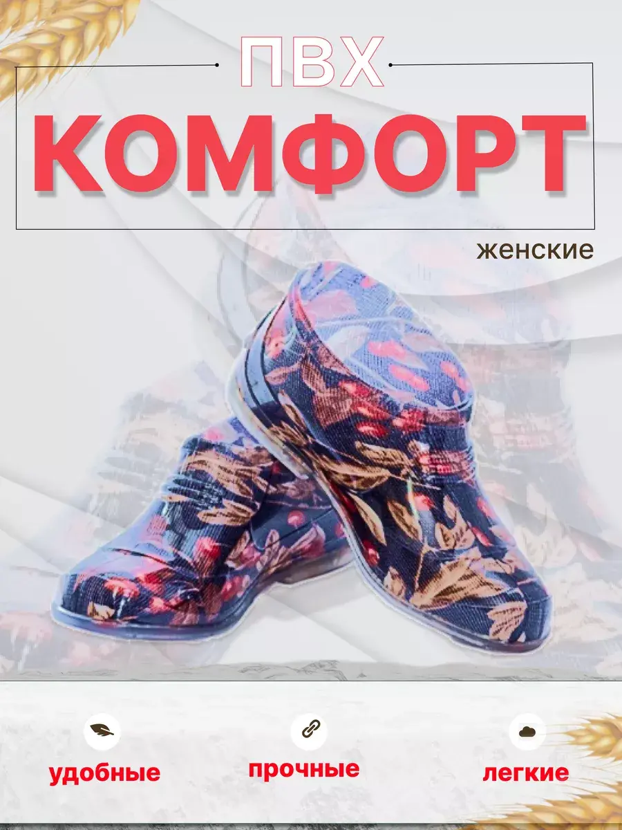 Галоши - обувь для дома и дачи, сада и огорода. Эта модель коротких резиновых полусапогов для женщин благодаря продуманному модному дизайну не только практичная, но и стильная. Для изготовления используется качественный плотный ПВХ, который не вызывает раздражений кожи, а также в отличие от материала эва гибкий и не боится высоких температур, поэтому используется в производстве спецобуви. Благодаря методам производства, силиконовые галоши мягкие и эластичные, на сгибах не образуются заломы и трещины. Водоотталкивающий материал обеспечивает надежную защиту от дождя весной, летом и осенью. Непромокаемые высокие голоши без утеплителя - отличный летний вариант обуви для дачных, садовых и строительных работ, а также туризма. Короткая, в меру низкая садовая спецобувь свободно сидит на ноге и не давит на пятки. Калоши женские резиновые надеваются и снимаются без труда и по сути являются домашними тапочками для улицы. Благодаря технологии изготовления, низкие сапоги из ПВХ являются самым водонепроницаемым видом защитной обуви, неприхотливы в уходе, их легко мыть и чистить, можно хранить в домашних или уличных условиях. Колоши летние имеют универсальную полноту и подойдут для широкой ноги и узкой стопы. Нескользящие силиконовые полусапожки идеальны для весенней и осенней погоды. Милые галоши с декоративным принтом отлично подойдут для пожилых женщин. Их можно надеть на прогулку с собакой или взять с собой в поход или на рыбалку.