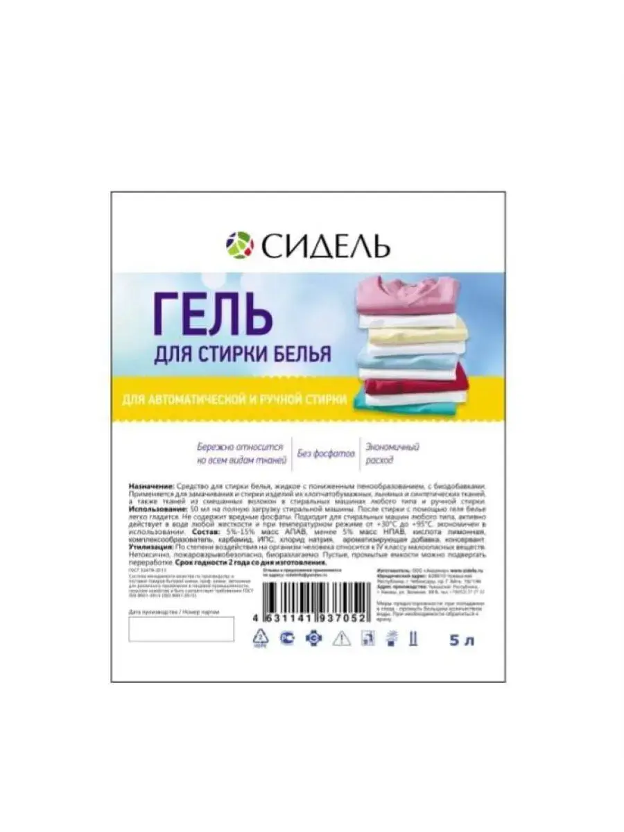 Средство для стирки белья, жидкое с пониженным пнообразованием, с биодобавками. Применяется для замачивания и стирки изделий из хлопчатобумажных, льняных и синтетических тканей, а также тканей из смешанных волокон в стиральных машинах любого типа и ручной стирки. Использование: 50 млна полную загрузку стиральной машины. После стирки с помощью геля белье легко гладится. Не содержит фосфаты. Подходит для машин любого типа, активно действует в воде любой жесткости и при температурном режиме от +30°C до +95°C, экономичен в использовании.