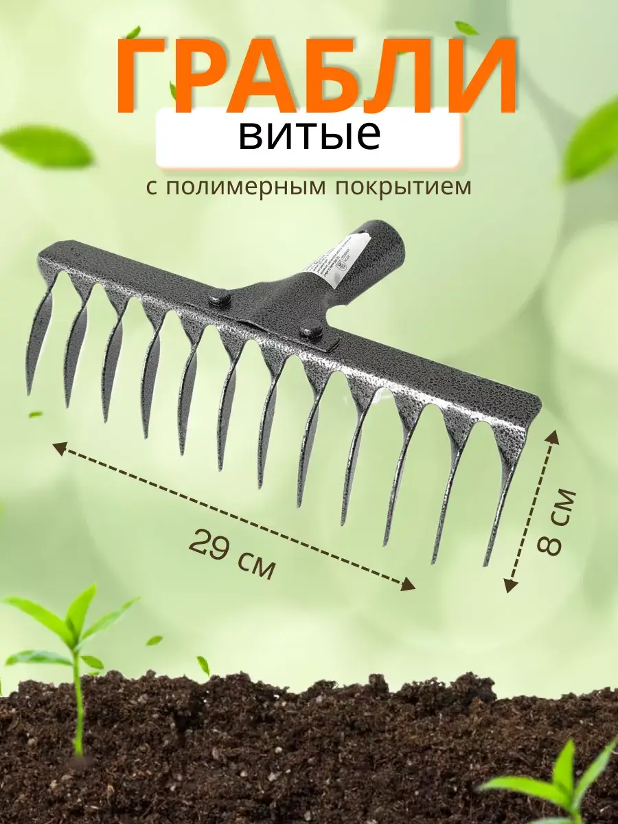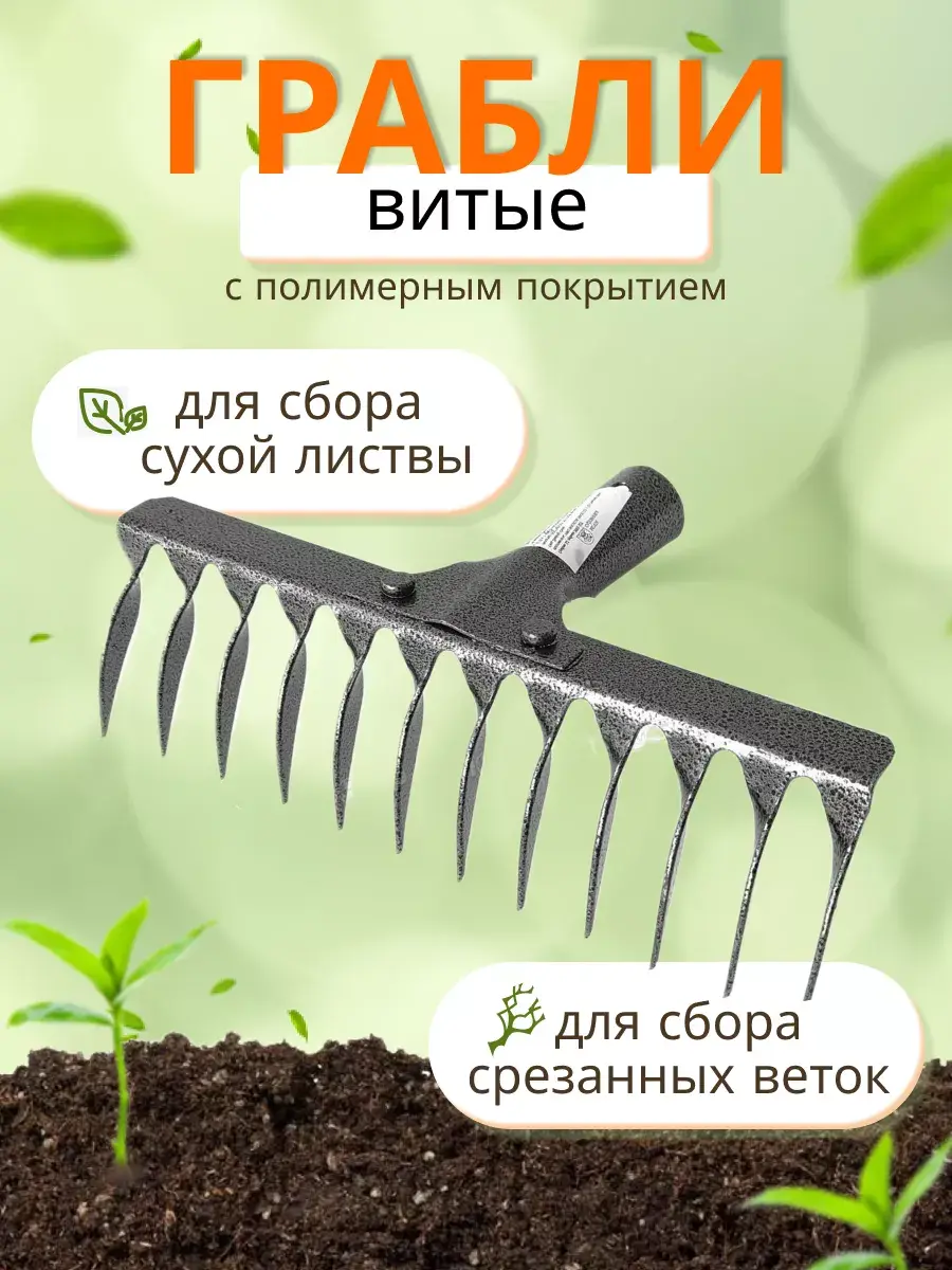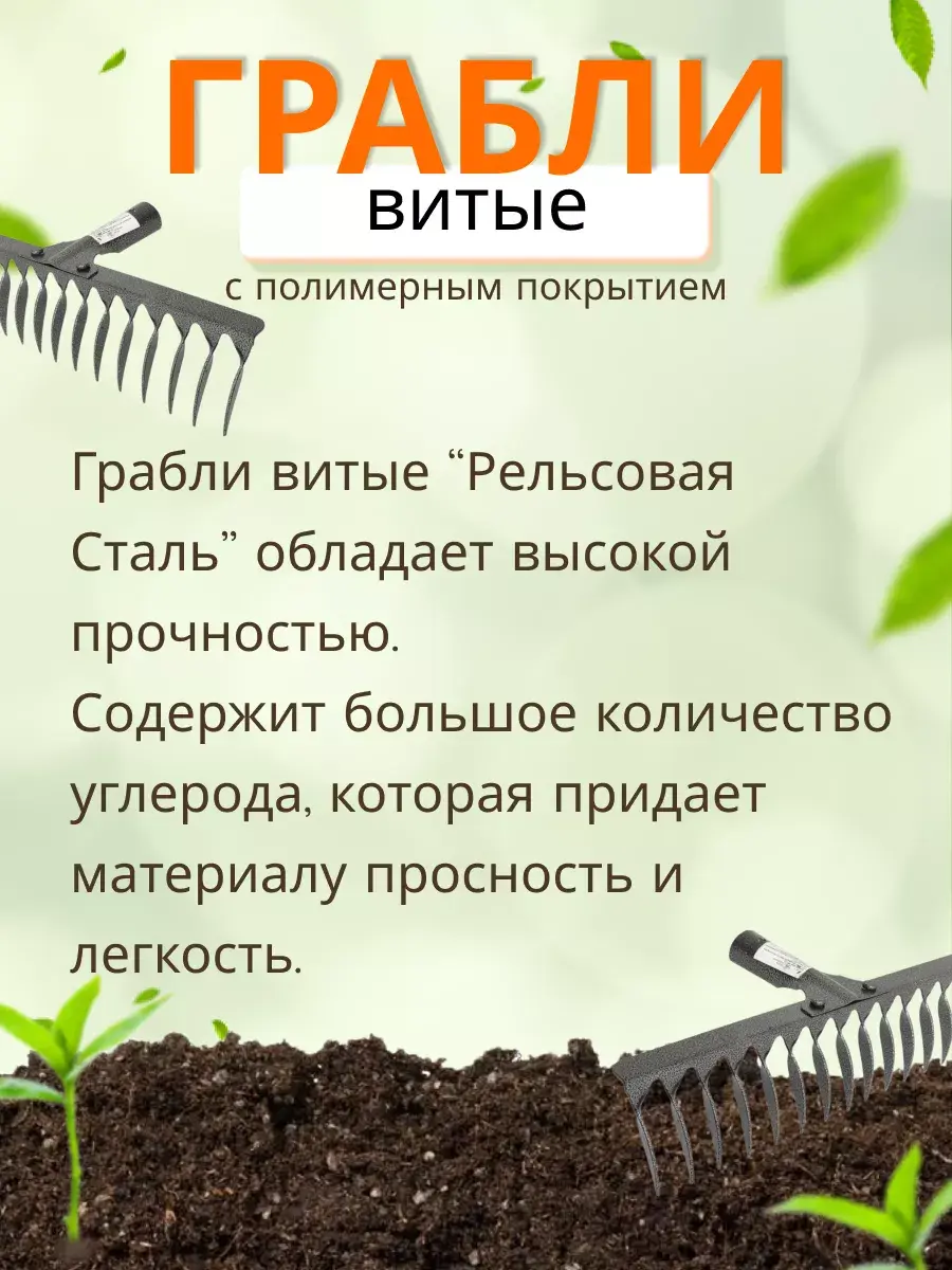 Грабли витые 12-зубые "Рельсовая Сталь" с полимерным покрытием идеально подходят для садов и огородов любого размера. Они не только помогут быстро и легко очистить ваш участок от листвы и мусора, но и прослужат вам долгое время благодаря качественным материалам и надежной конструкции.