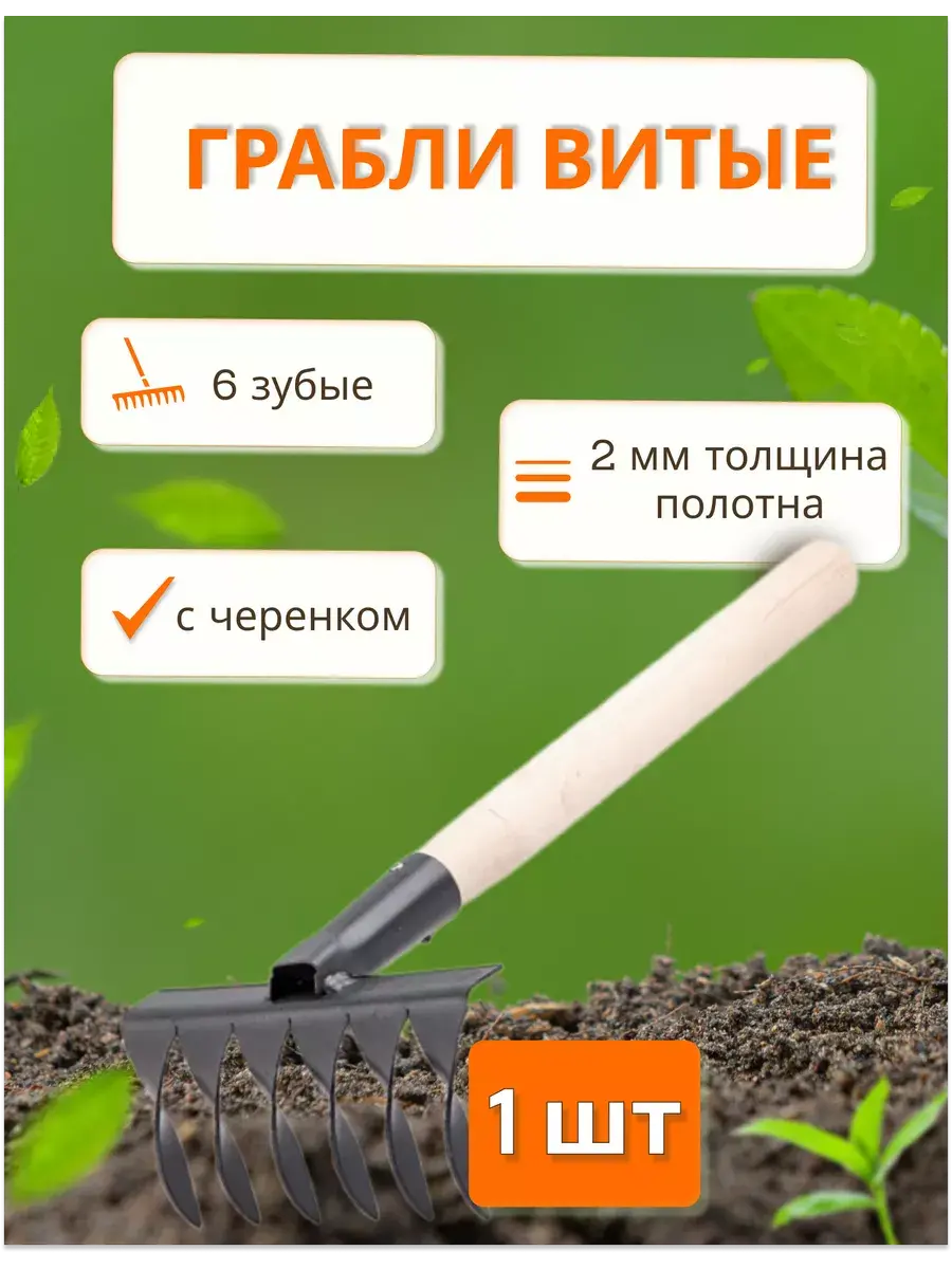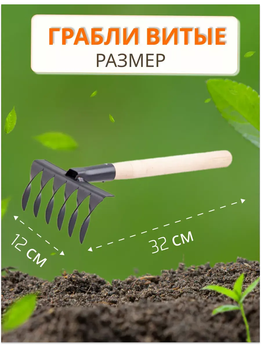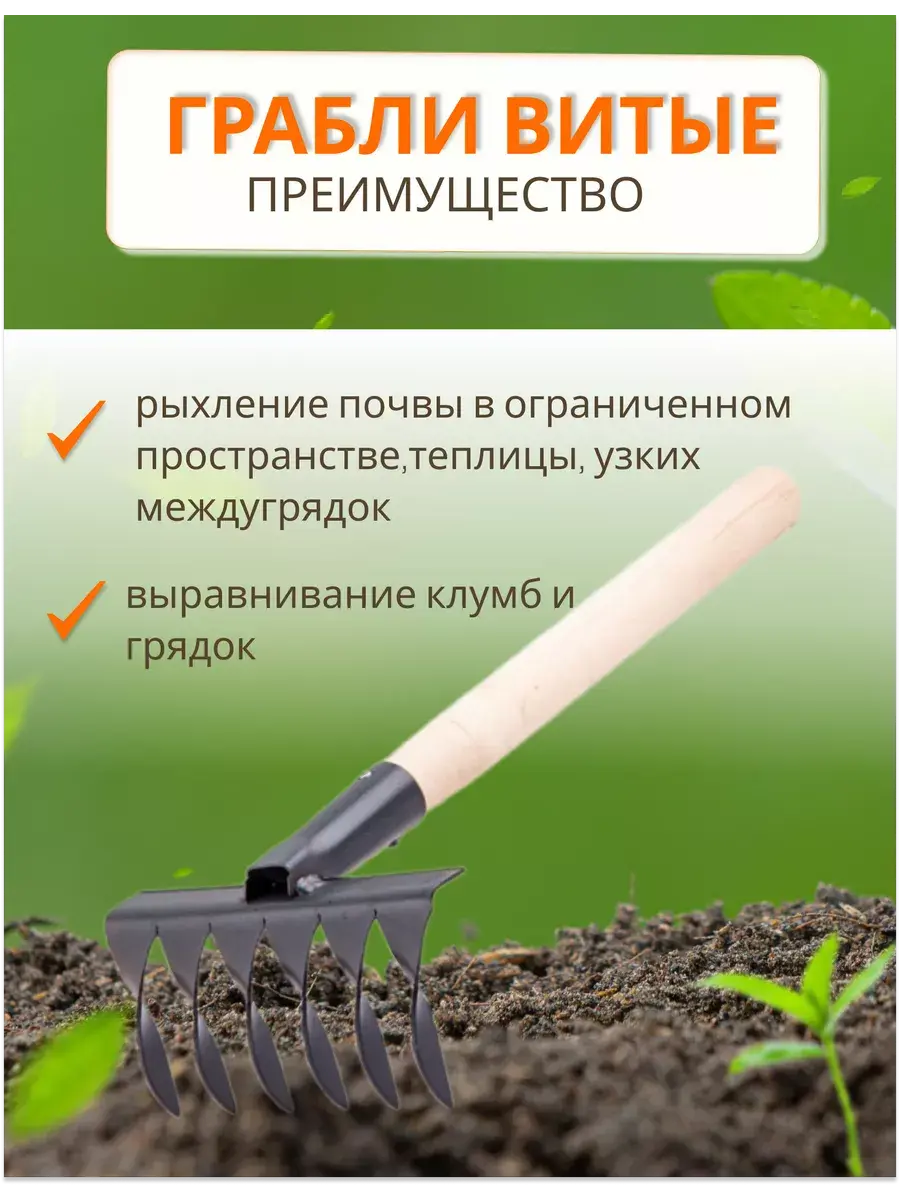 Грабли витые с черенком - это незаменимый инструмент для обработки почвы в саду и огороде. Они представляют собой металлические грабельки с витыми зубьями, которые эффективно справляются с рыхлением почвы и удалением сорняков. Они имеют высокую прочность и долговечность, что делает их необходимым элементом садового инвентаря. Также могут использоваться для уборки листьев и других растительных остатков. Для более эффективной работы можно использовать различные насадки, такие как тяпка, мотыга, и разрыхлитель. Тяпка и мотыга предназначены для прополки сорняков, а плоскорез и разрыхлитель - для рыхления почвы. Тяпка острая и мотыжка ручная позволяют эффективно прополоть сорняки. Применяются для разрыхления почвы в ограниченном пространстве цветника, теплицы или узких междурядий. Изготовлены из конструкционной углеродистой стали