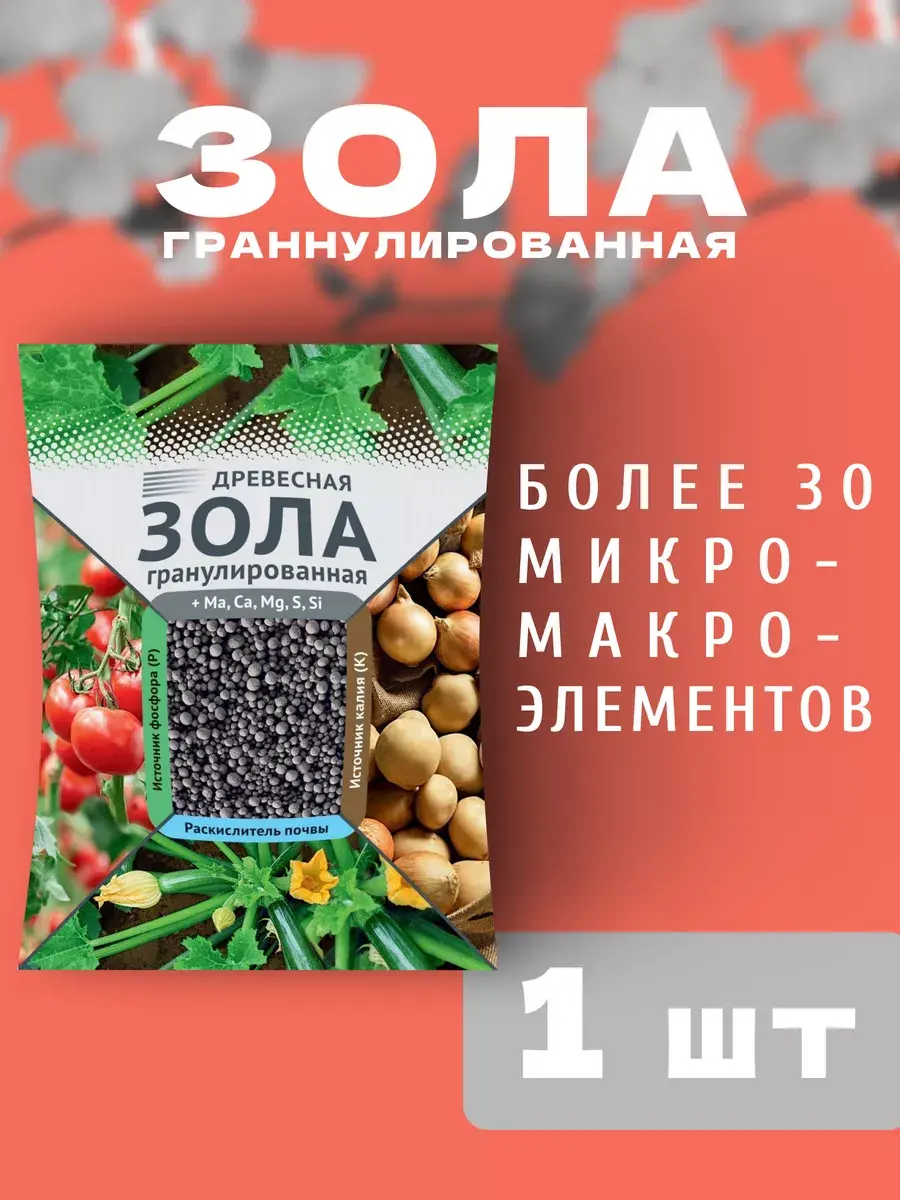 Гранулированная древесная зола — экологически чистое комплексное удобрение пролонгированного действия! Древесная зола обогащает почву питательными элементами, способствует раскислению почвы. Содержит более 30 питательных макро- и микроэлементов: в т.ч. в большом количестве кальций, калий, фосфор, магний и серу. Фосфор активизирует рост корневой системы на ранних этапах развития. Исключительно важен для растений! При дефиците фосфора образуется меньше цветков, а их окраска становится тусклой и малопривлекательной, снижается урожай. Калий регулирует концентрацию клеточного сока, сохраняет воду, активизирует ферменты. Способствует хорошему общему состоянию растений, усиливает их устойчивость к низким температурам. Критически важен для развития корневой системы и формирования урожая. Кальций ускоряет расход запасных углеводов при прорастании семени. Используется растениями, как строительный материал. Снимает кислотность почвы. Магний нужен для образования в листьях хлорофилла, без которого невозможны процессы фотосинтеза. Важен для цветения и созревания семян. Сера усиливает синтез аминокислот, белков, витаминов и процесс дыхания. Кремний предает растениям механическую прочность, укрепляет стенки клеток, повышает устойчивость к воздействию болезней. Имеет выраженный антистрессовый эффект. Действие гранулированной золы длительнее и эффективнее, питательные элементы из нее попадают в почву постепенно и более равномерно. Не содержит хлор! Массовая доля питательных веществ (элементов питания): общего фосфора (Р2O5) — 3,0-4,0%; калия (К20) — 2,9-4,5%; кальция (СаO) — 28,0-39,0%; магния (MgO) — 4,0-9,0%; серы (SO3) - 1,5-2,3%; массовая доля микроэлементов (цинк (Zn), медь (Cu), марганец (Mn), бор (B), молибден (Mo), кобальт (Co), железо (Fe)) — не менее 0,3%.