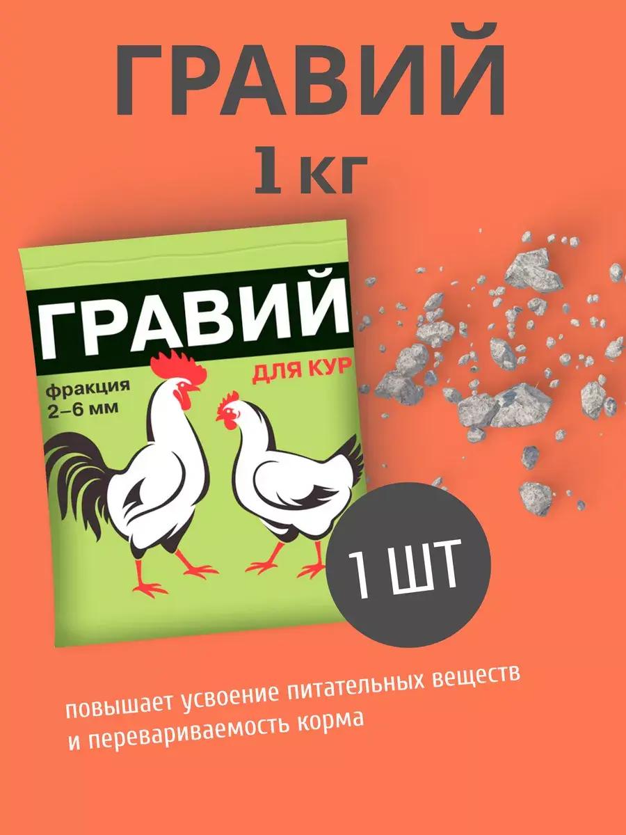 Гравий, фракция 2–6 мм, для взрослых кур, цесарок и молодняка водоплавающих птиц (старше 2-х месяцев)