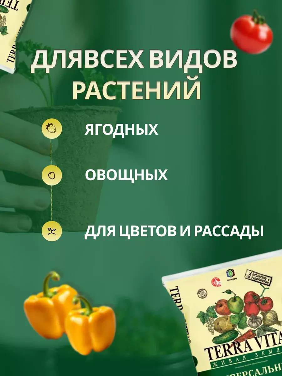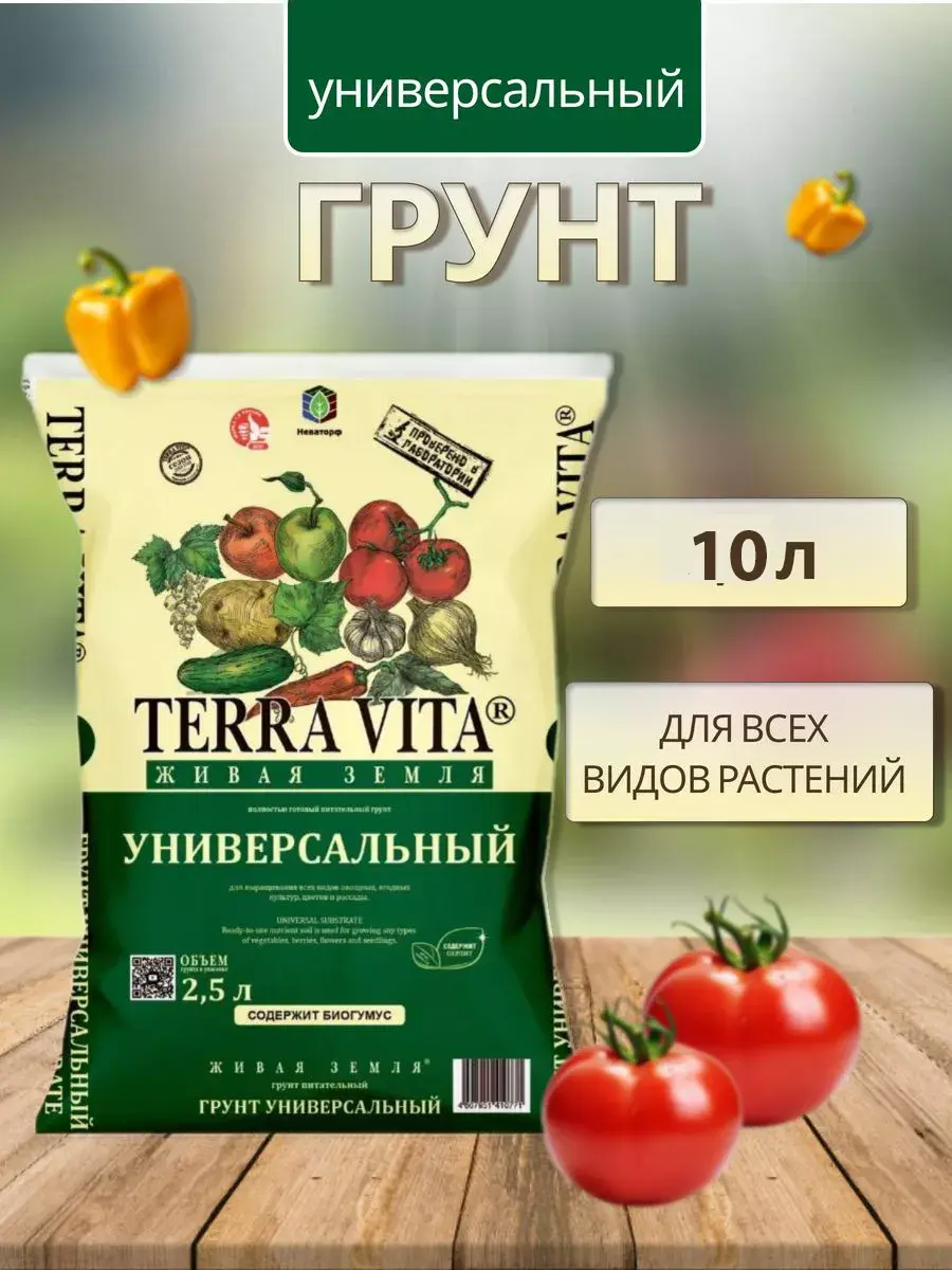 Качественный грунт, земля для рассады универсальная для растений и овощных культур - это незаменимый помощник для создания идеальной среды, благоприятной для роста и развития зелени.Он обеспечивает всеми необходимыми питательными веществами, чтобы ваши цветы и овощи выросли крепкими и здоровыми.Универсальный грунт терра вита 10л сочетает в себе все преимущества лучших почвенных составляющих. Он содержит торф верховой нейтральный, который обеспечивает оптимальное сохранение влаги и сохраняет равновесие pH-уровня почвы. А также перлит и цеолит, которые улучшают структуру грунта, способствуют дренированию излишков жидкости и позволяют корням дышать.Неотъемлемой частью этого грунта является вермикулит - уникальный минерал, который повышает плодородие почвы и обогащает ее микроэлементами.Создайте оптимальные условия для успешного выращивания петуний, суккулентов или замиокулькаса.Натуральный запах создает атмосферу свежести и естественности в вашем саду или огороде. Грунт идеально подходит как грунт цветочный для пальм, адениума, фикуса бенджамина,спатифиллума и антуриума,грунт для драцены,томатов и перцев,ароидных растений,фиалок с перлитом,минеральный почвогрунт и почвоулучшитель для замиокулькаса,кактуса,авокадо,папоротника,монстеры,денежного дерева,голубики,земляники,лимона,бонсай,огурцов. Введение универсального грунта для цветов растений и овощных культур в ваше хозяйство - это лучшее решение.Даже самые требовательные растения найдут в нем необходимую заботу и питание. Обеспечьте им комфортные условия роста с помощью этого качественного грунта.