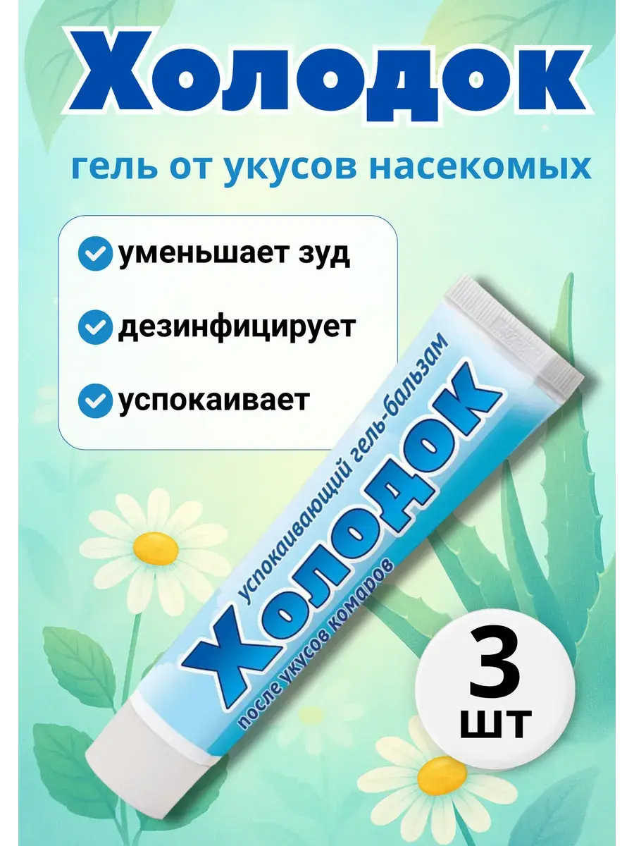 Гель бальзам после укуса насекомых "Холодок" 50мл универсальное средство с успокаивающим эффектом, легко наносится на кожу, в виде прозрачного геля не имеет жирного блеска, оставляет на теле приятный аромат мяты и ощущение легкой прохлады. Крем гель на водной основе обеспечивает быстрое охлаждение после нападения комаров клопов слепней москитов мошки а так же после ожогов от медуз и крапивы. Специально разработанный "Холодок" предоставляет немедленное облегчение после укусов комаров, мошек, москитов и слепней. С его помощью вы сможете избавиться от зуда и раздражения, оставив за собой только ощущение комфорта. Крем "Холодок" применяется локально на область укуса по необходимости. Его богатый и естественный состав способствует уменьшению воспаления и уменьшает зуд, позволяя вашей коже восстановиться. Состав "Холодка" включает в себя натуральные компоненты, такие как дистиллированная вода, гидрогенезированное касторовое масло, сок алоэ, карбамид и экстракты растений, включая календулу, ромашку и одуванчик. Эфирные масла мяты, эвкалипта и лимона обогащают формулу, а Д-пантенол и аллантоин способствуют заживлению кожи. Просто нанесите "Холодок" на область укуса в соответствии с инструкцией, и вы почувствуете облегчение сразу же. Этот гель-бальзам станет вашим надежным союзником в борьбе с неприятными ощущениями после укусов насекомых, даря вашей коже заслуженное успокоение.