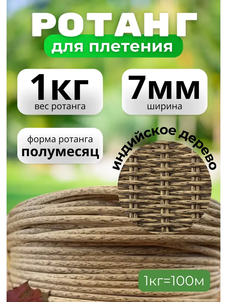 В 1 кг - 100м. Форма ротанга полумесяц 8мм