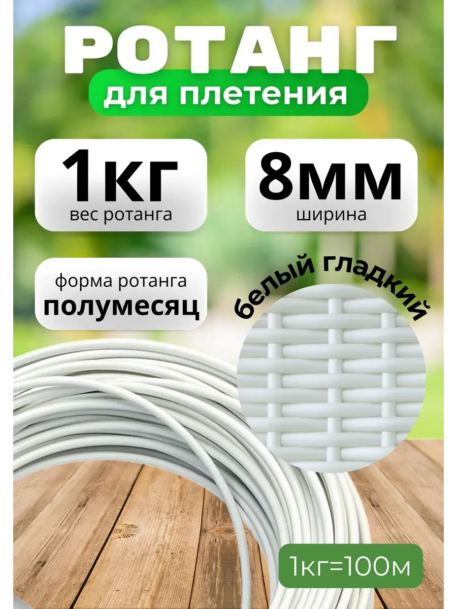 В 1 кг - 100м. Форма ротанга полумесяц 8мм