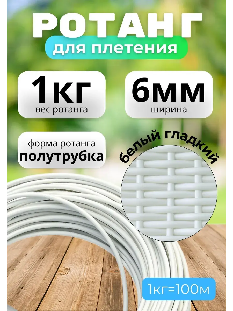 В 1 кг - 100м. Форма ротанга полутрубка 6мм