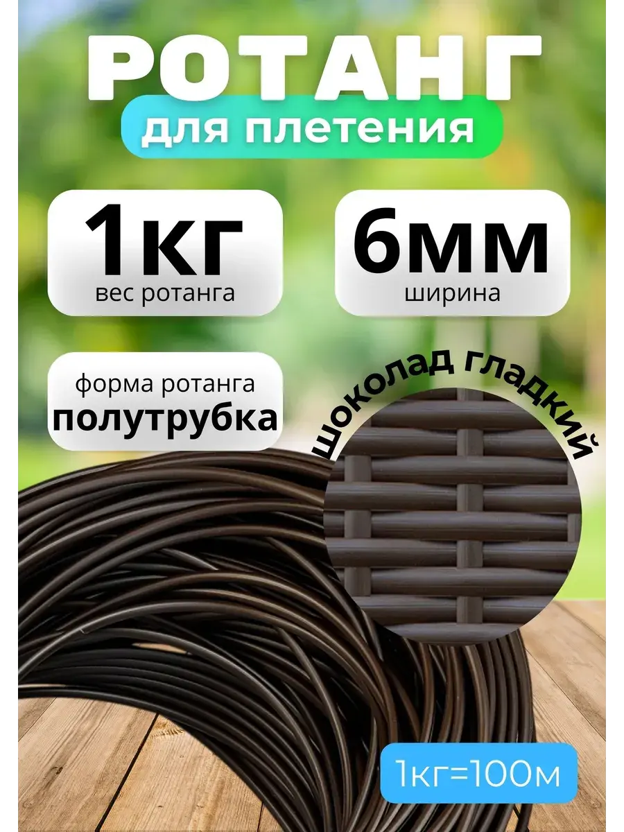 Искусственный ротанг для плетения — это современный материал, который идеально подходит для создания стильной и долговечной мебели. Полиротанг - это универсальный материал, который может использоваться для создания различных изделий. Он может стать незаменимым украшением вашего интерьера и сада. Прочный, долговечный и экологичный материал. Этот аксессуар для плетения прочный и долговечный, не выгорает на солнце, а также не подвержен воздействию влаги и перепаду температур, доступная цена, что делает его идеальным вариантом для использования на открытом воздухе. Этот материал легко чистится и не требует специального ухода, что делает его комфортным в использовании для любого интерьера. Благодаря использованию ротанга, изделия получают необходимую прочность и долговечность. Rammus экоротанг- это 100% экологически чистый полимерный материал нового поколения, который производится по уникальной формуле, разработанной технологами фабрики RAMMUS. В качестве компонентов для изготовления экоротанга применяется сугубо первичное сырье от мирового бренда Sabic - гранулированный полиэтилен высокого давления, полиэтилен низкого давления и линейный полиэтилен, а также краситель Masterbatch.