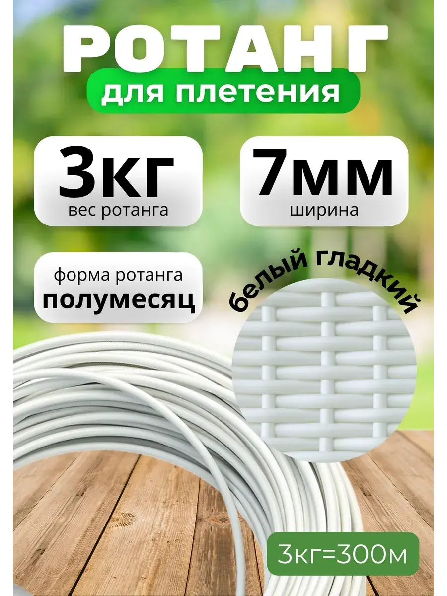 В 1 кг - 100м. Форма ротанга полумесяц 8мм