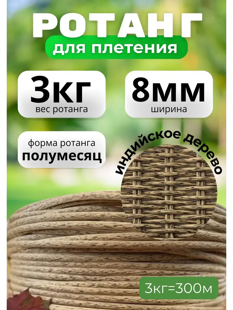 В 1 кг - 100м. Форма ротанга полумесяц 8мм