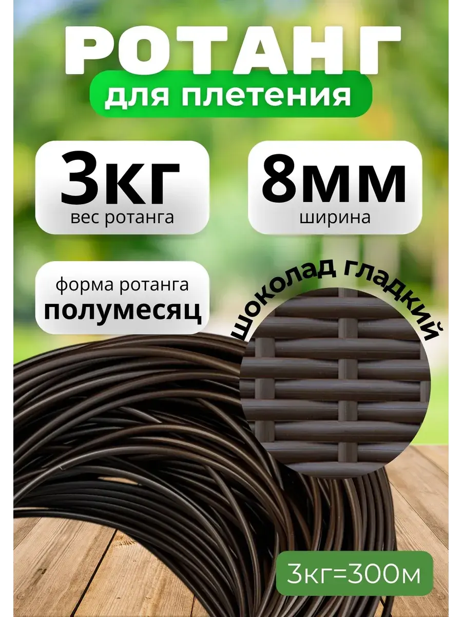 В 1 кг - 100м. Форма ротанга полумесяц 8мм