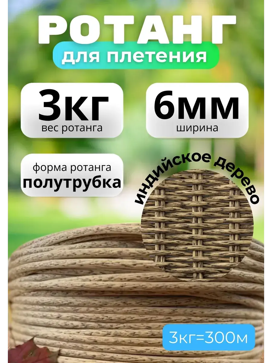 В 1 кг - 100м. Форма ротанга полутрубка 6мм