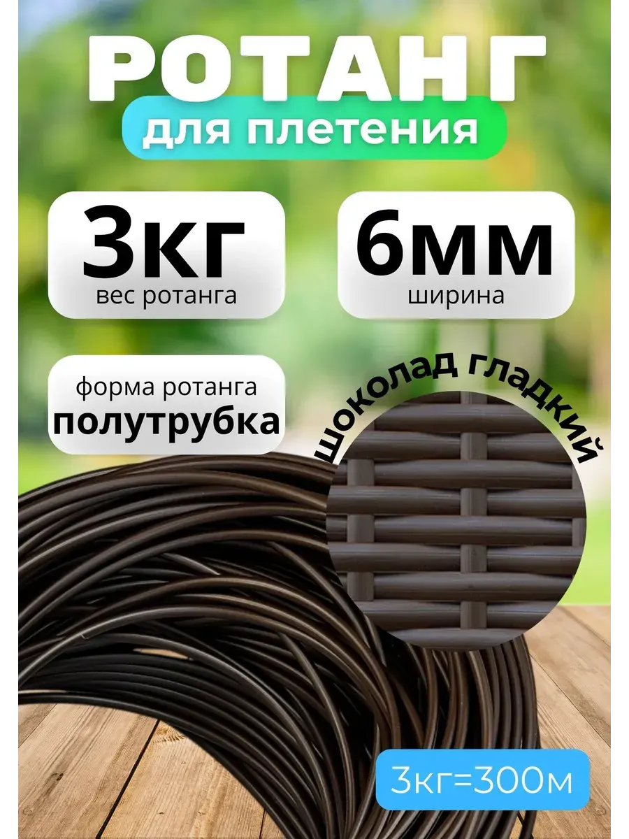 Искусственный ротанг для плетения — это современный материал, который идеально подходит для создания стильной и долговечной мебели. Полиротанг - это универсальный материал, который может использоваться для создания различных изделий. Он может стать незаменимым украшением вашего интерьера и сада. Прочный, долговечный и экологичный материал. Этот аксессуар для плетения прочный и долговечный, не выгорает на солнце, а также не подвержен воздействию влаги и перепаду температур, доступная цена, что делает его идеальным вариантом для использования на открытом воздухе. Этот материал легко чистится и не требует специального ухода, что делает его комфортным в использовании для любого интерьера. Благодаря использованию ротанга, изделия получают необходимую прочность и долговечность. Rammus экоротанг- это 100% экологически чистый полимерный материал нового поколения, который производится по уникальной формуле, разработанной технологами фабрики RAMMUS. В качестве компонентов для изготовления экоротанга применяется сугубо первичное сырье от мирового бренда Sabic - гранулированный полиэтилен высокого давления, полиэтилен низкого давления и линейный полиэтилен, а также краситель Masterbatch.