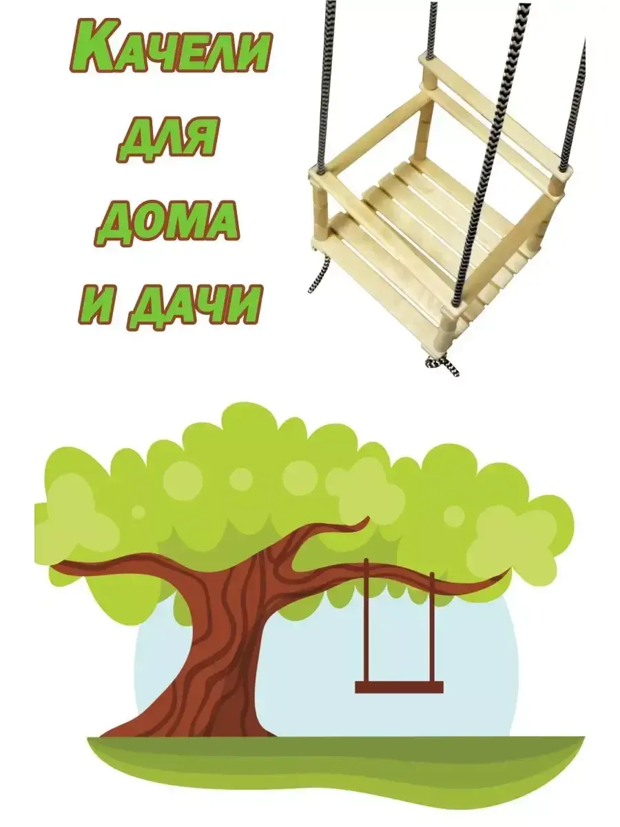 Детские качели изготовлены из березовой и осиновой древесины. Это сырье обладает высокой прочностью и износостойкостью, по качеству не отличается от дуба. Качели для малышей, сделанные из этой древесины. Еще одно полезное свойство такой древесины – хорошая влагостойкость, что позволяет использовать детские качели как дома, так и в саду и на даче. Конструкция подвесных уличных детских качелей проста и надежна: крепкое деревянное сидение, съемные перекладины и высокопрочный шнур. Благодаря прочному каркасу подвесного кресла садовые качели выдерживает нагрузку до 20 кг. Веревка для качелей имеет в диаметре 6 мм, изготовлена из крепкого синтетического волокна.