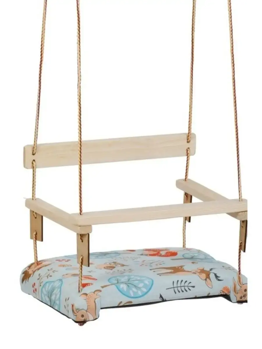 Такие качели идеально подходят для игр на свежем воздухе и помогут вашему ребенку развиваться и веселиться! Размеры сидения 25х35 см. Максимальная нагрузка до 20 кг. Изготовлены из дерева.