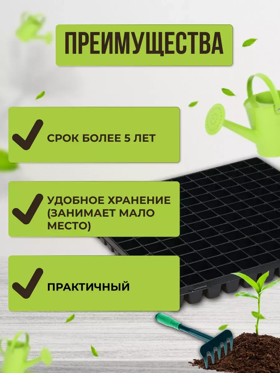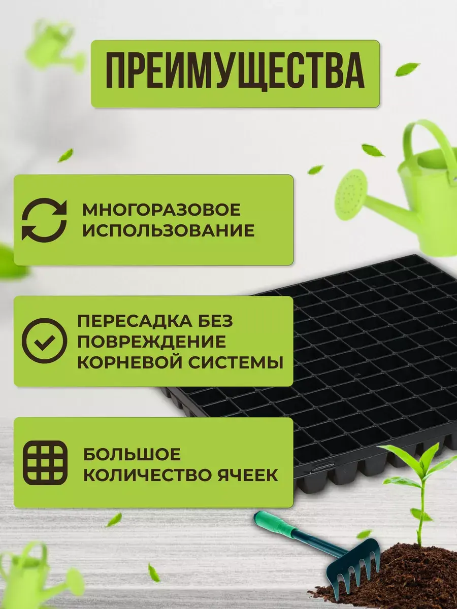 ВНИМАНИЕ : Кассеты без поддона , с отверстиями!Набор пластиковых кассет для рассады 1 штука. Они идеально подходят для выращивания рассады овощных и цветочных культур. Широкое применение нашли для выращивания цветов однолетних и многолетних культур. Контейнеры используются для выращивания рассады огурцов и томатов, перца или кабачков, для клубники и цветов. Также можно использовать для посадки семян капусты поздней и ранней, сельдерея и кукурузы, листового салата и микрозелени. Кассеты маленькие черного цвета под рассаду изготовлена из стабилизированного, морозостойкого полипропилена, благодаря которому срок службы изделий достигает до нескольких сезонов. Контейнеры для черенкования и выращивания упрощают высадку молодых растений в грунт. Позволяют оптимизировать расход семян и почвы, помогают получить здоровую и крепкую рассаду. Поскольку у каждого растения своя ячейка, корни не переплетаются, между растениями идет равномерное распределение поступающих питательных веществ.