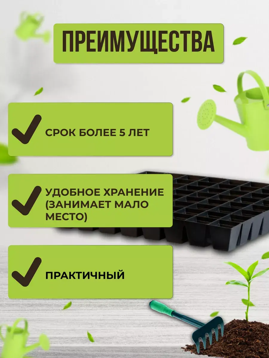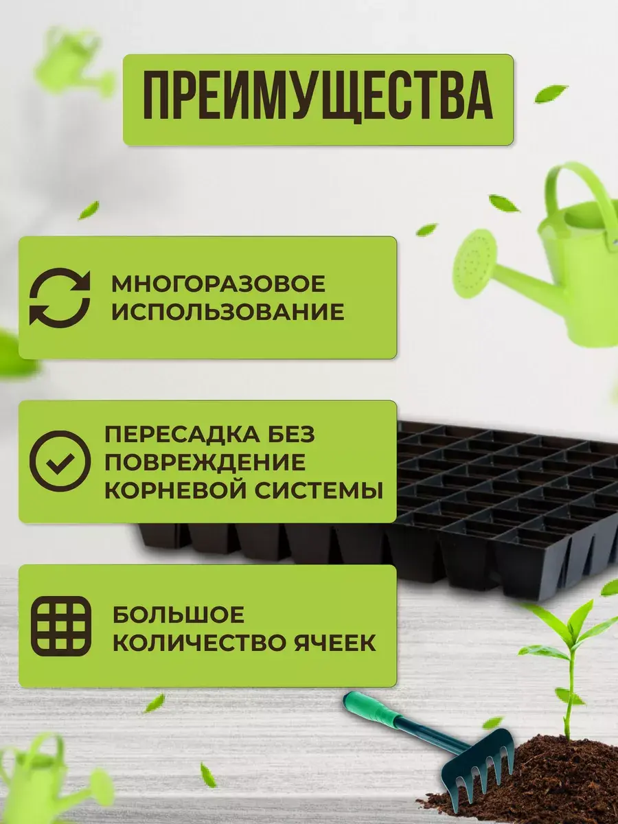 ВНИМАНИЕ : Кассеты без поддона , с отверстиями!Набор пластиковых кассет для рассады 1 штука. Они идеально подходят для выращивания рассады овощных и цветочных культур. Широкое применение нашли для выращивания цветов однолетних и многолетних культур. Контейнеры используются для выращивания рассады огурцов и томатов, перца или кабачков, для клубники и цветов. Также можно использовать для посадки семян капусты поздней и ранней, сельдерея и кукурузы, листового салата и микрозелени. Кассеты маленькие черного цвета под рассаду изготовлена из стабилизированного, морозостойкого полипропилена, благодаря которому срок службы изделий достигает до нескольких сезонов. Контейнеры для черенкования и выращивания упрощают высадку молодых растений в грунт. Позволяют оптимизировать расход семян и почвы, помогают получить здоровую и крепкую рассаду. Поскольку у каждого растения своя ячейка, корни не переплетаются, между растениями идет равномерное распределение поступающих питательных веществ.