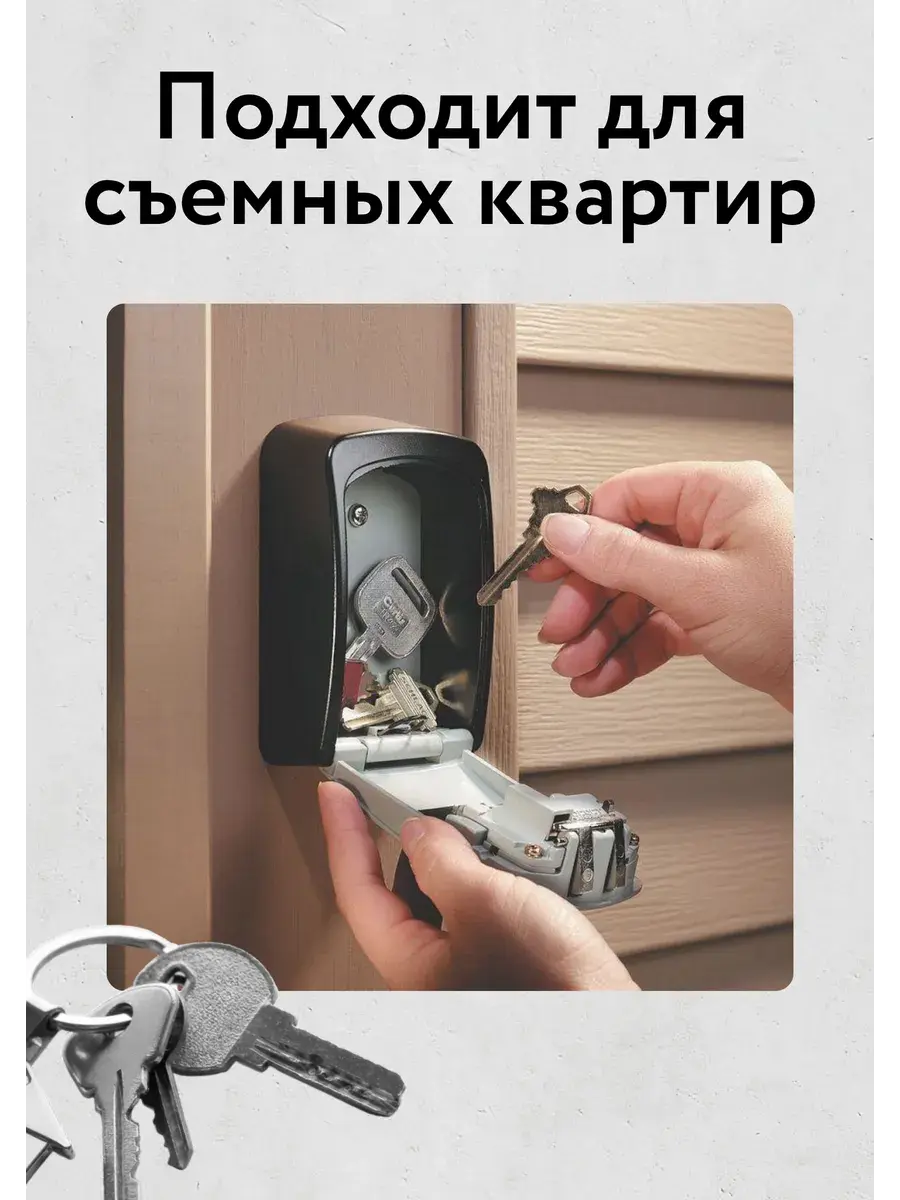 Сейф для хранения ключей с кодовым замком - это удобное, практичное и безопасное решение для вашего дома. Система хранения для ключей представляет собой мини шкафчик с корпусом и крышкой сделанной из алюминиевого сплава, на которой находится рычаг и 4 механизма с цифрами, для создания кода. Ключница на стену подходит для дома, гаража, дачи и подъезда. Ключница может служить как гаражный замок или как ключница для дома. Сейф настенный с кодовым замком имеет 10000 комбинаций, которые вы сможете установить согласно инструкции. Мини кейс можно положить до 5 средних ключей, ключница с замком находится под защитой кода, поэтому все ваши двери и хранимые вещи будут в безопасности.