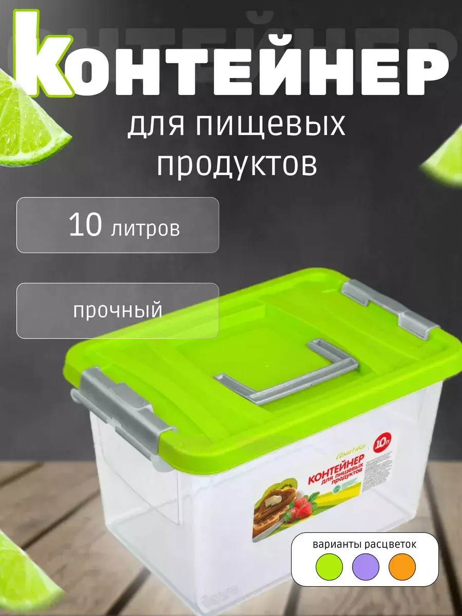 Контейнер для хранения объемом 10 литров и размерами 348 х 232 х 210 мм - отличное решение для организации хранения продуктов и других предметов в вашей кухне или домашнем хозяйстве. Изготовленный из пищевого пластика, этот контейнер безопасен для хранения продуктов и легко моется, что делает его практичным и удобным в использовании.