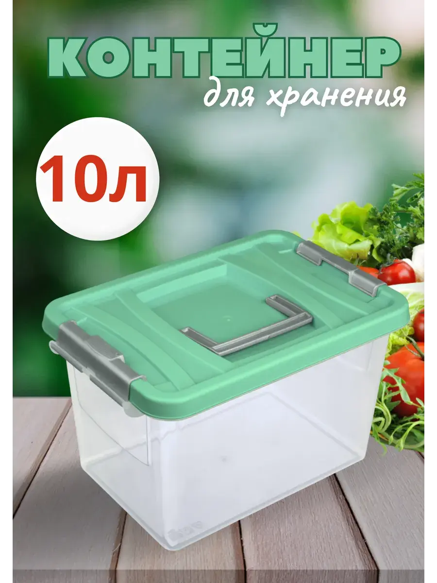 Контейнер для хранения объемом 10 литров и размерами 348 х 232 х 210 мм - отличное решение для организации хранения продуктов и других предметов в вашей кухне или домашнем хозяйстве. Изготовленный из пищевого пластика, этот контейнер безопасен для хранения продуктов и легко моется, что делает его практичным и удобным в использовании.