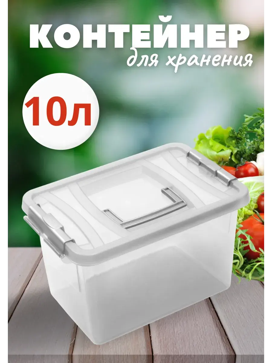 Контейнер для хранения объемом 10 литров и размерами 348 х 232 х 210 мм - отличное решение для организации хранения продуктов и других предметов в вашей кухне или домашнем хозяйстве. Изготовленный из пищевого пластика, этот контейнер безопасен для хранения продуктов и легко моется, что делает его практичным и удобным в использовании.