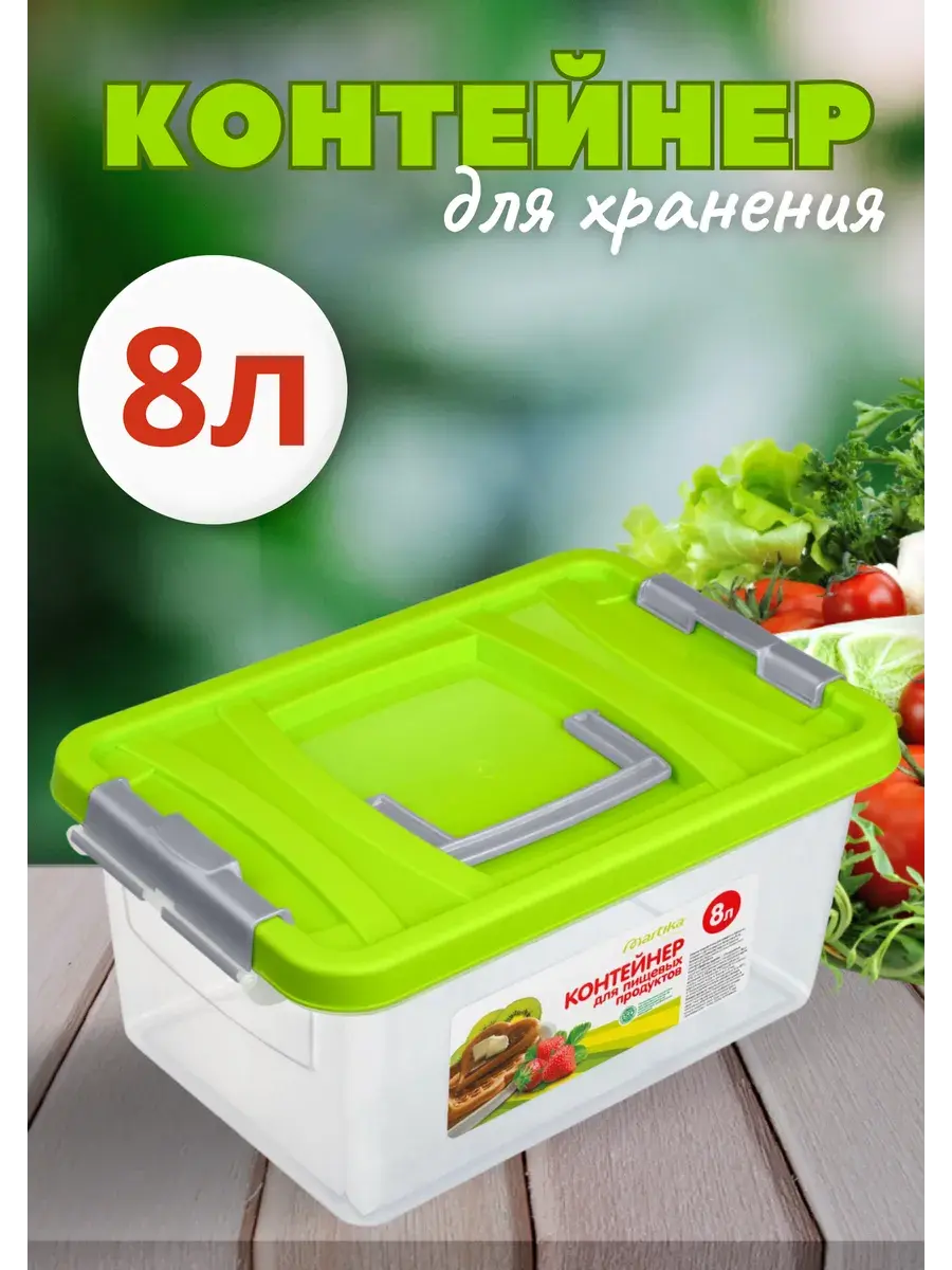 Контейнер для пищевых продуктов 8 л. H 163 мм многоразовый. Длина 347 мм, ширина 232 мм. - отличное решение для организации хранения продуктов и других предметов в вашей кухне или домашнем хозяйстве. Размер дна 18х27. Изготовленный из пищевого пластика, этот контейнер безопасен для хранения продуктов и легко моется, что делает его практичным и удобным в использовании.