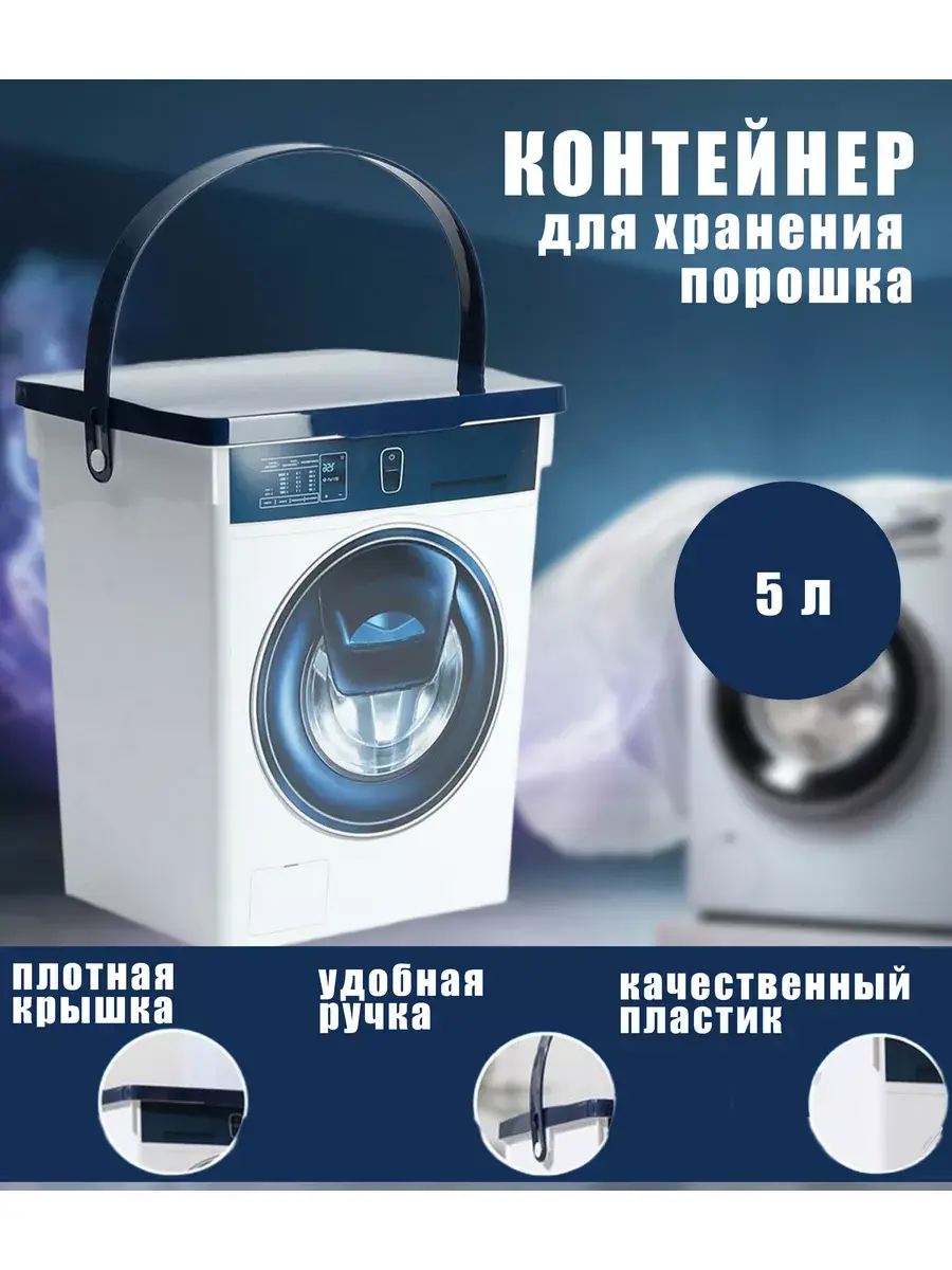 Контейнер для стирального порошка – украсит вашу ванную комнату. Стильный дизайн ящика для порошка впишется в любой интерьер. Емкость для порошка рассчитана на хранение 5 л порошка. Удобные защелки на крышке препятствуют самопроизвольному открыванию крышки коробки для порошка. Органайзер для хранения моющих средств поставляется в комплекте с мерной ложкой, которая крепится на корпусе емкости для хранения. Пластиковый контейнер можно использовать для хранения не только порошка, но и капсул для стирки. Ведро для порошка выполнено из пластика. Герметичность контейнера с ручкой препятствует попаданию влаги в моющее средство. Благодаря полупрозрачным стенкам банки для хранения вы всегда будете видеть, сколько порошка у вас осталось.