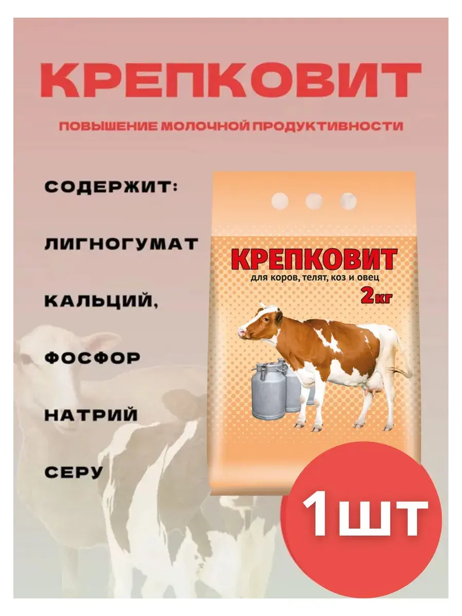 “Крепковит” для крупного рогатого скота 2кг - это кормовая добавка, которая способствует укреплению костной и мышечной системы, улучшению иммунитета и общего состояния здоровья животных. Она содержит необходимые витамины, макро- и микроэлементы, включая кальций, фосфор, цинк, йод, кобальт и другие. Особенно полезна добавка для молодых животных в период активного роста и для коров в период стельности и лактации, когда потребность в питательных веществах возрастает. Использование “Крепковита” помогает улучшить аппетит животных, увеличить их массу и повысить продуктивность. . Крепковит предотвращает болезни ног, костей и суставов, улучшает состояние кожи, шерсти и копыт, способствует хорошему состоянию зубов в течение жизни животного. Улучшает обмен веществ, пищеварение, работу кровеносной и эндокринной систем. Процессы старения животных идут медленнее, коровы и козы дольше сохраняют крепкое здоровье. Улучшаются воспроизводительные функции животных, коровы, козы и овцы быстрее и лучше идут в случку, а молодняк родится более крепким и здоровым.