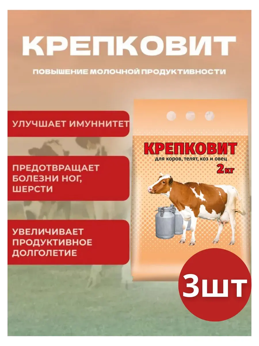 “Крепковит” для крупного рогатого скота 2кг - это кормовая добавка, которая способствует укреплению костной и мышечной системы, улучшению иммунитета и общего состояния здоровья животных. Она содержит необходимые витамины, макро- и микроэлементы, включая кальций, фосфор, цинк, йод, кобальт и другие. Особенно полезна добавка для молодых животных в период активного роста и для коров в период стельности и лактации, когда потребность в питательных веществах возрастает. Использование “Крепковита” помогает улучшить аппетит животных, увеличить их массу и повысить продуктивность. . Крепковит предотвращает болезни ног, костей и суставов, улучшает состояние кожи, шерсти и копыт, способствует хорошему состоянию зубов в течение жизни животного. Улучшает обмен веществ, пищеварение, работу кровеносной и эндокринной систем. Процессы старения животных идут медленнее, коровы и козы дольше сохраняют крепкое здоровье. Улучшаются воспроизводительные функции животных, коровы, козы и овцы быстрее и лучше идут в случку, а молодняк родится более крепким и здоровым.
