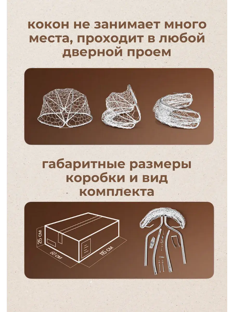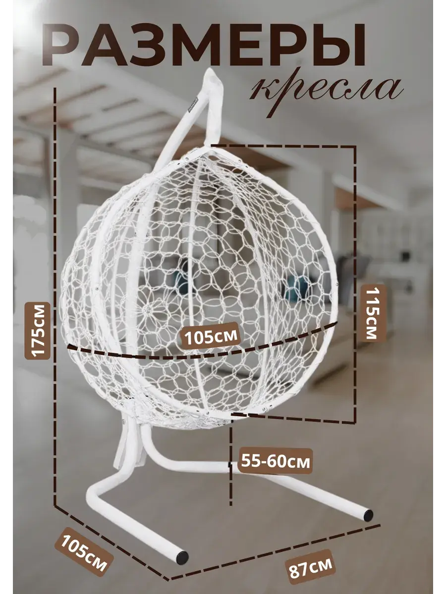 Поставив кресло в гостиную оно станет центром внимания, привлекая взгляды гостей и создавая уютную атмосферу для общения и отдыха. В спальне качели гнездо станет местом для чтения перед сном, обеспечивая комфорт и расслабление.Качели садовые взрослые занимает всего 1кв.м. Качель данной модели является складной, что делает его мобильным при транспортировки и позволяет пронести кресло через любой дверной проем.