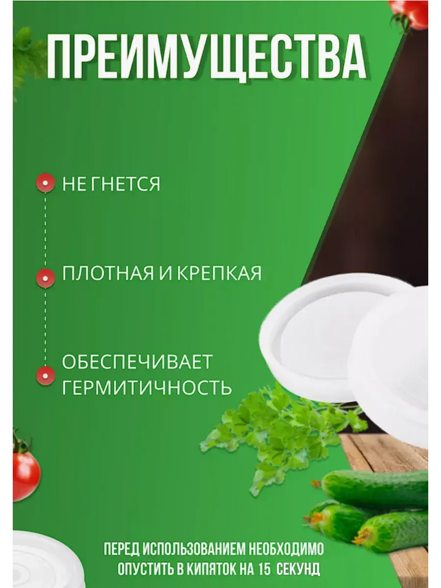 Крышки полиэтиленовые для горячего консервирования также обладают простым и удобным механизмом закрытия. Они легко наносятся на горловину банок и надежно фиксируются, обеспечивая герметичность и безопасность. Кроме того, крышки разработаны с учетом эргономики и удобства использования, что делает процесс укупоривания банок быстрым и удобным.